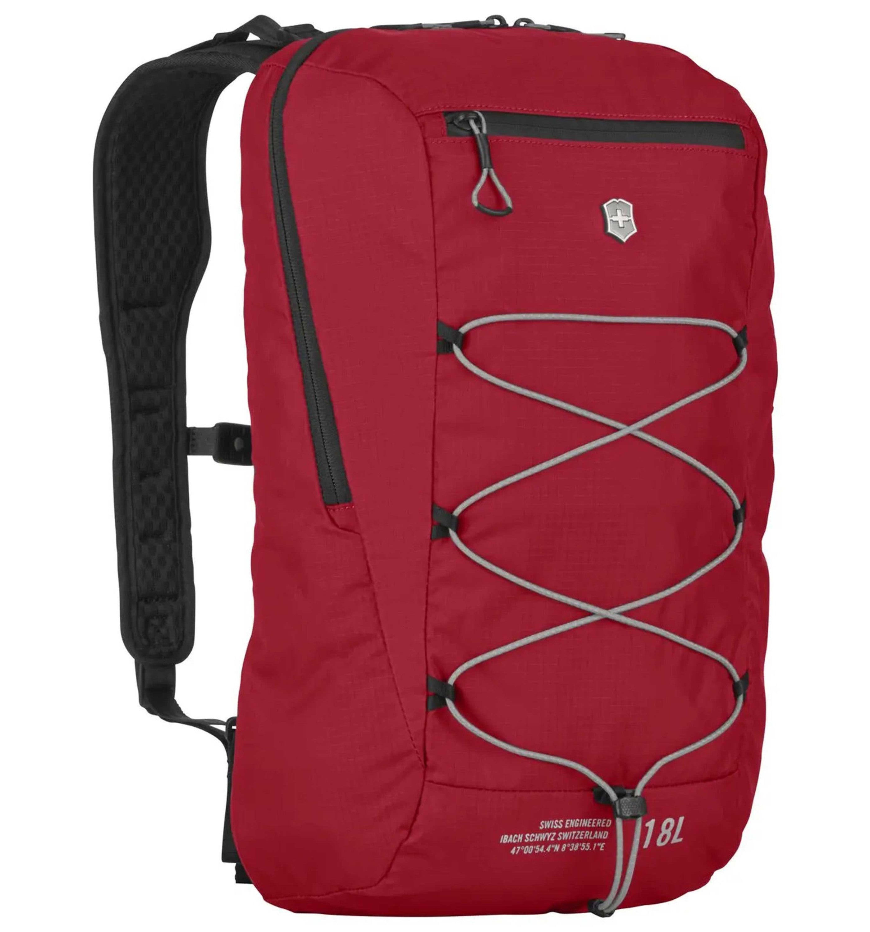 Lightweight and ready to take on any challenge, Altmont Active Lightweight Compact Backpack means business. Roomy at 18L, yet slimline, this backpack is light years ahead in its hands-free luggage vision. Built to partner the most active, modern traveler, it snugly stores a 2L water bottle for on-the-go hydration. An integrated accessory cord works with exterior gear loops to effortlessly attach helmets, sneakers, climbing gear or yoga mats. Plus, the adjustable sternum strap with magnetic clasp helps keep weight distribution even, whatever you’re up to.