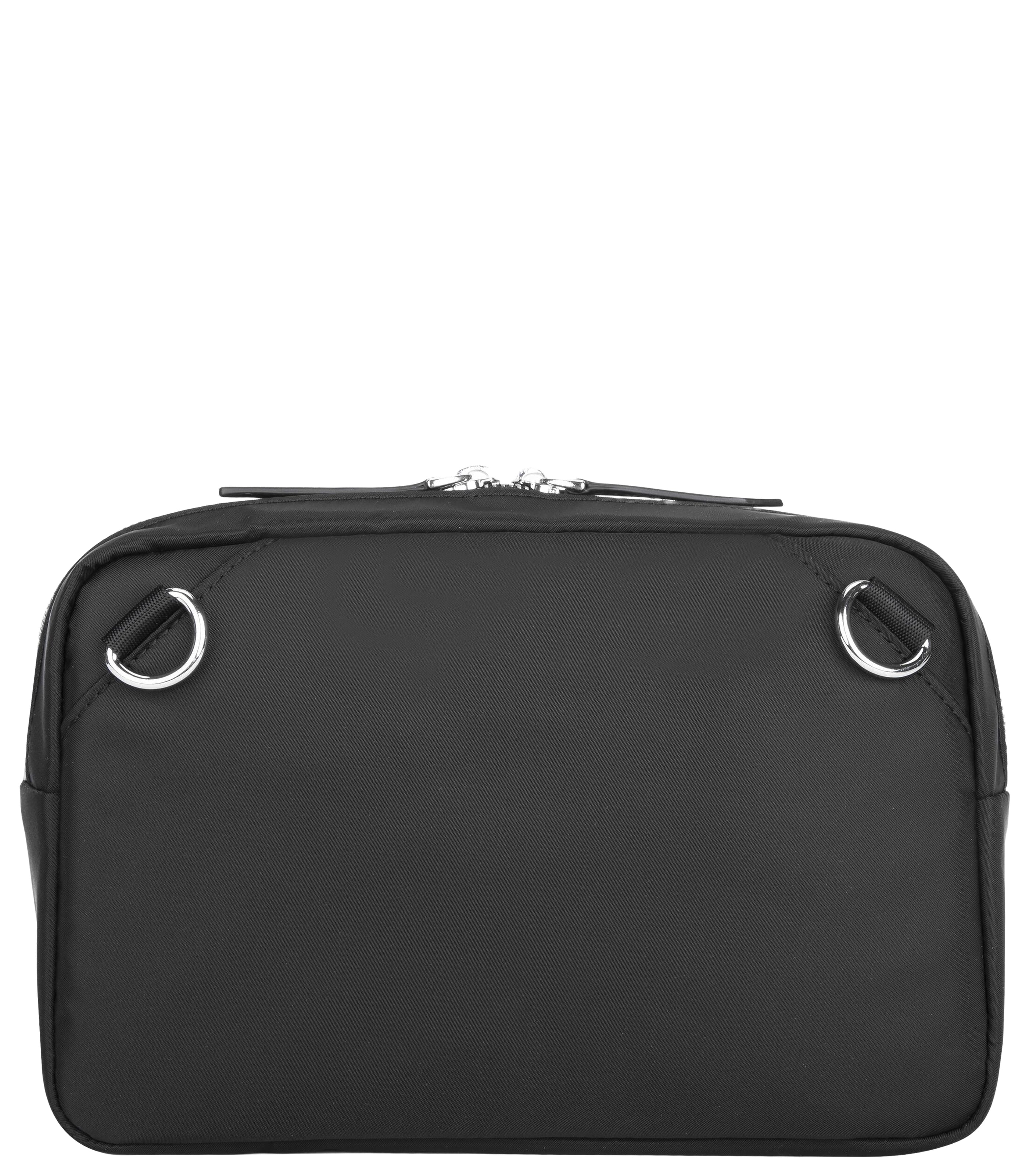 Features Removable, adjustable strap Front zippered stash pocket Lined interior with pockets High-density water-repellent twill nylon and leatherette accents