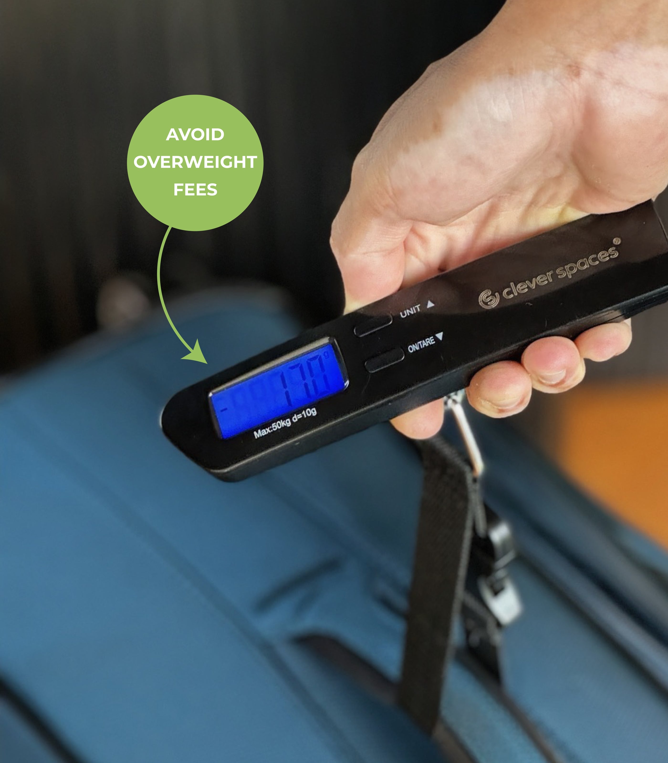 Clever Spaces® Portable Digital Luggage Weight Scale, your ultimate travel companion. Avoid Excess Bag Weight Costs: Don't let hefty excess baggage fees ruin your trip. Weigh your bags before you travel with our digital scale and stay in control of your luggage weight.