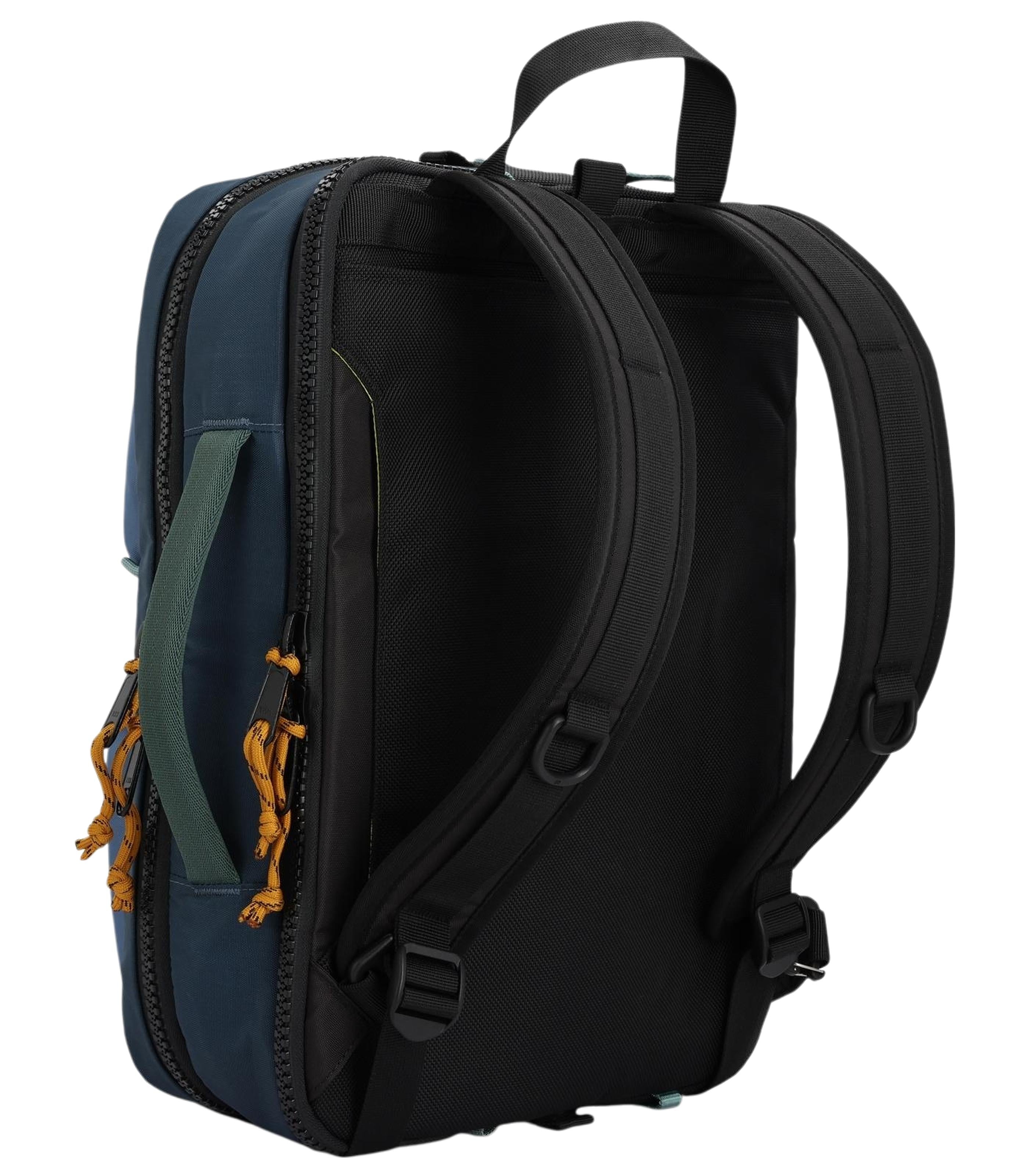 COLOR: STONE BLUE/FOREST DIMENSIONS L: 31 CM W: 7 CM H: 45 CM WEIGHT 0.98 kg CAPACITY 14 L MATERIAL: 100% Nylon w/ C0 DWR FEATURES: - 3 way carry (top carry, stowable backpack straps and a removable shoulder strap) - Padded external laptop compartment fits most 15” laptops - Zipper access to separate laptop compartment, fits most 15” laptops - Pass through panel for rolling luggage - U shape entry to large main compartment - Two large dimensional external pockets with mesh slip pocket - Removable adjustable padded shoulder strap - Bottom compression straps - PackFast Travel Bag attachment clips - Heavy duty YKK zippers - Carry on compliant
