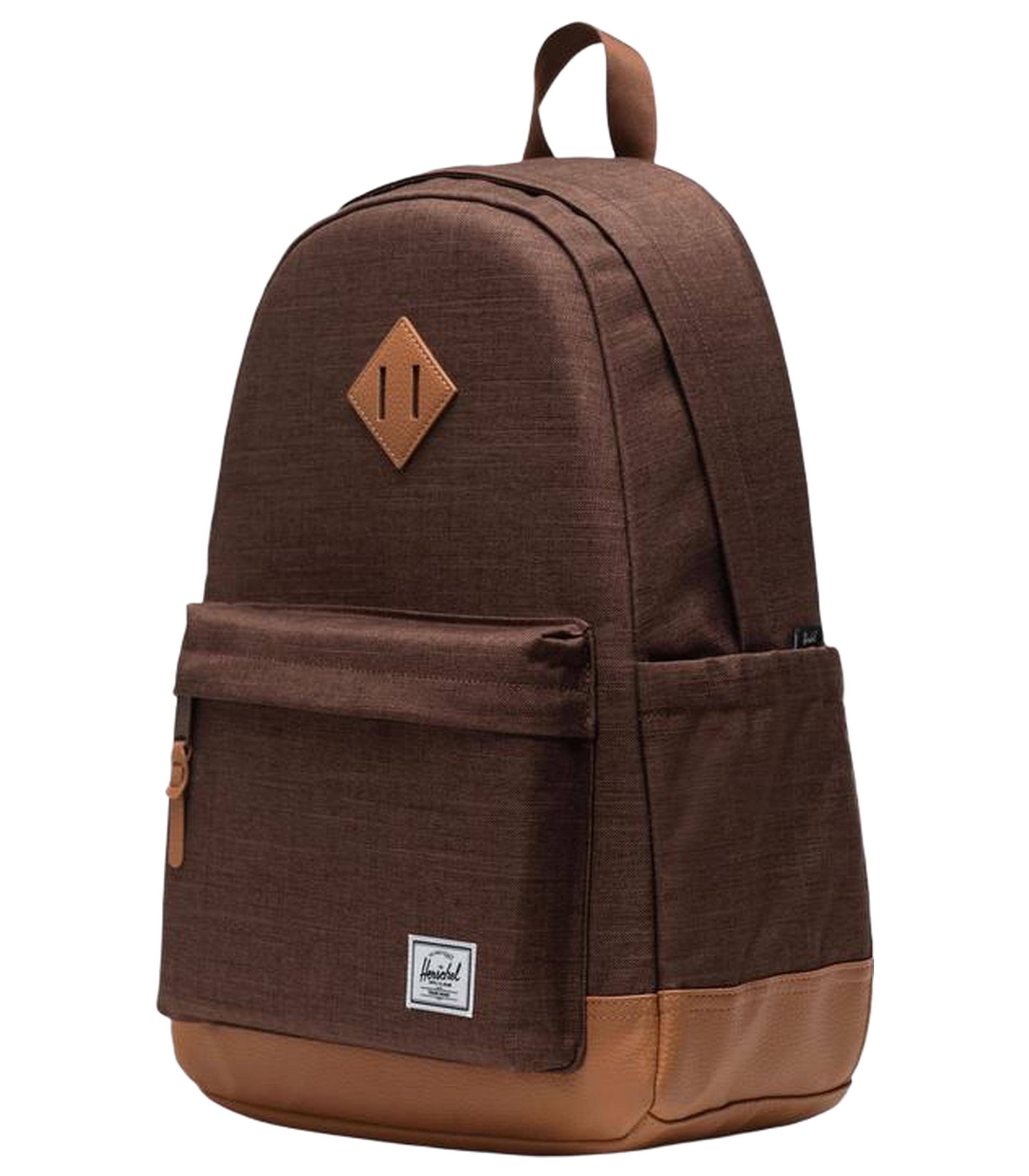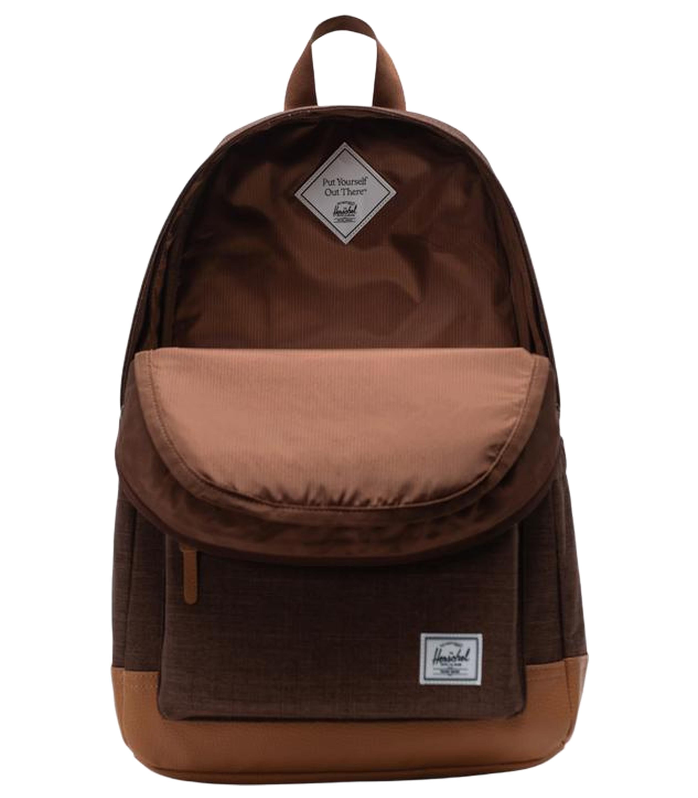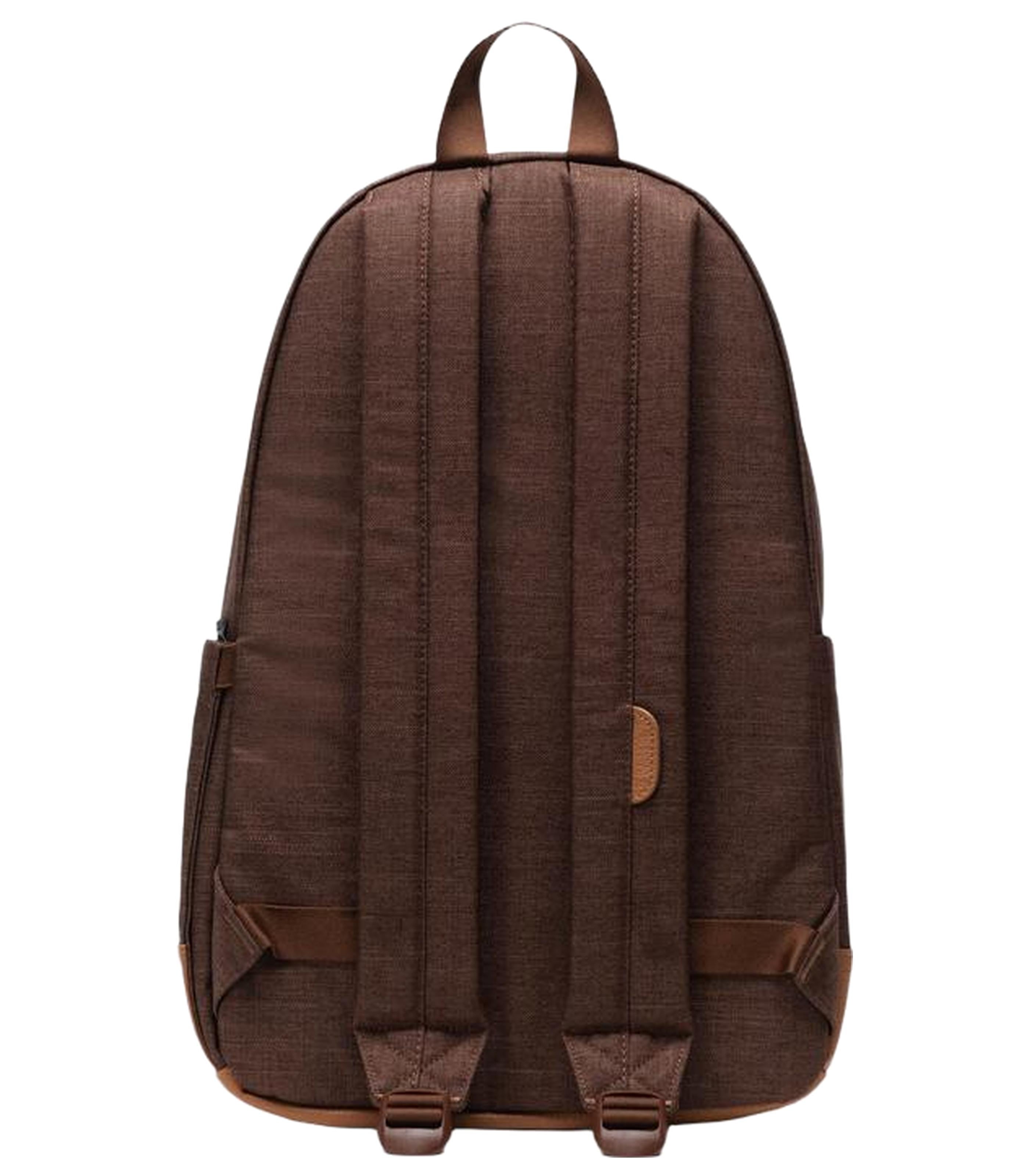 -EcoSystem 600D Fabric made from 100% recycled post-consumer water bottles -Tonal stripe EcoSystem Liner made from 100% recycled post-consumer water bottles -Signature diamond detailPadded floating sleeve fits a 15"/16" laptop -Zippered closures -carry comfortably with EVA-padded shoulder straps -Water bottle pocket expands to fit different sizes -side storage sleeve for Quick-reach items -Keep essentials in place with a front pocket organizer and Key Clip -Herschel Supply DNA shoulder tab -Put Yourself Out There Internal labelInternal Herschel Supply stripe DNA tab