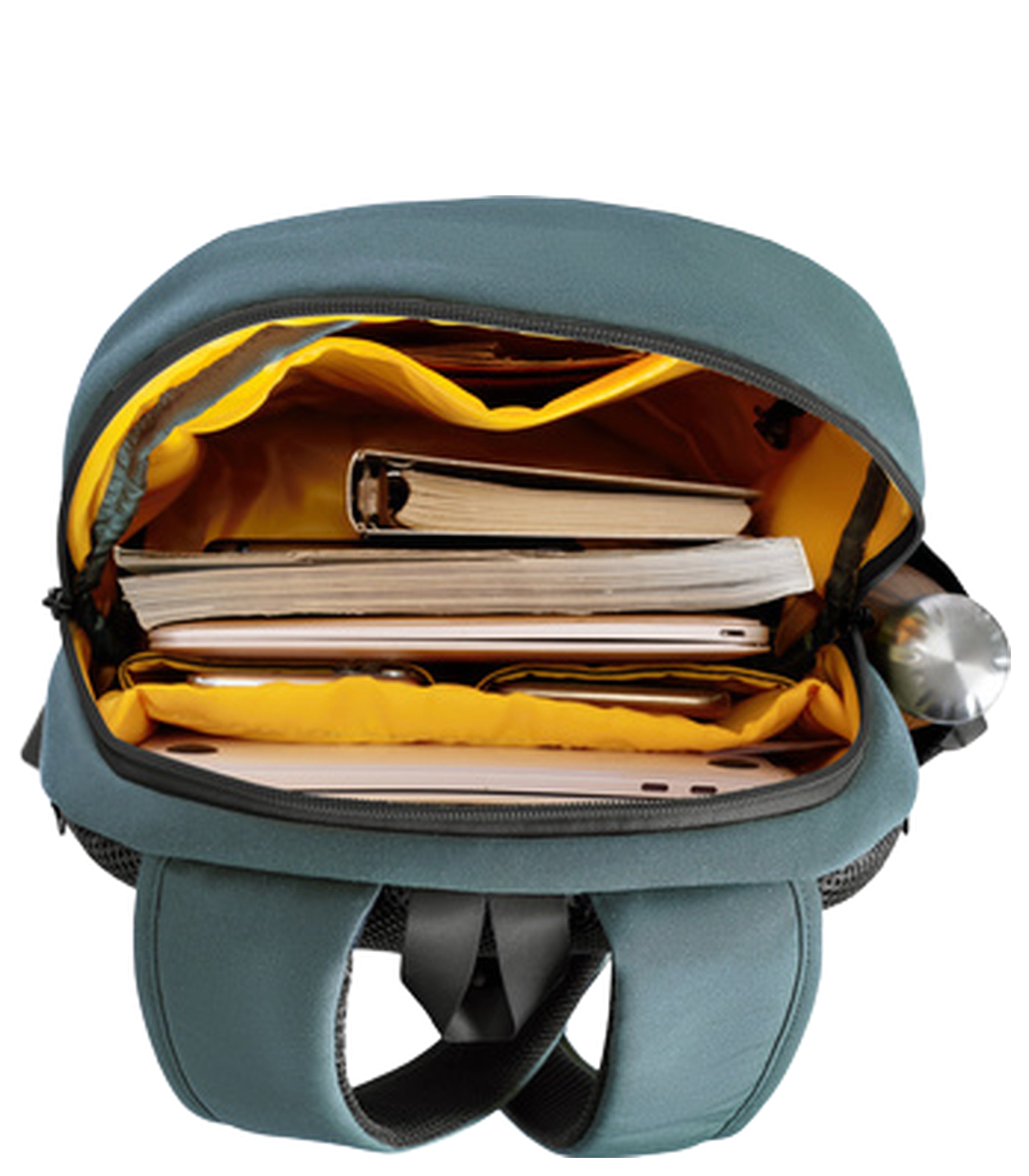 - A built-in 5-Point Anti-Theft security system helps prevent thieves from breaking into your bag. - A roomy 16 cubic liter locking main compartment with the premium organization. - Large interior RFID blocking zippered pocket protects your passport, wallet and cards. - A padded tech sleeve adeptly protects your tablet, 15.6” slim laptop, or 15” MacBook; 2 media drop pockets. - Tethered key clip that helps prevent search and rescue missions for car and house keys.