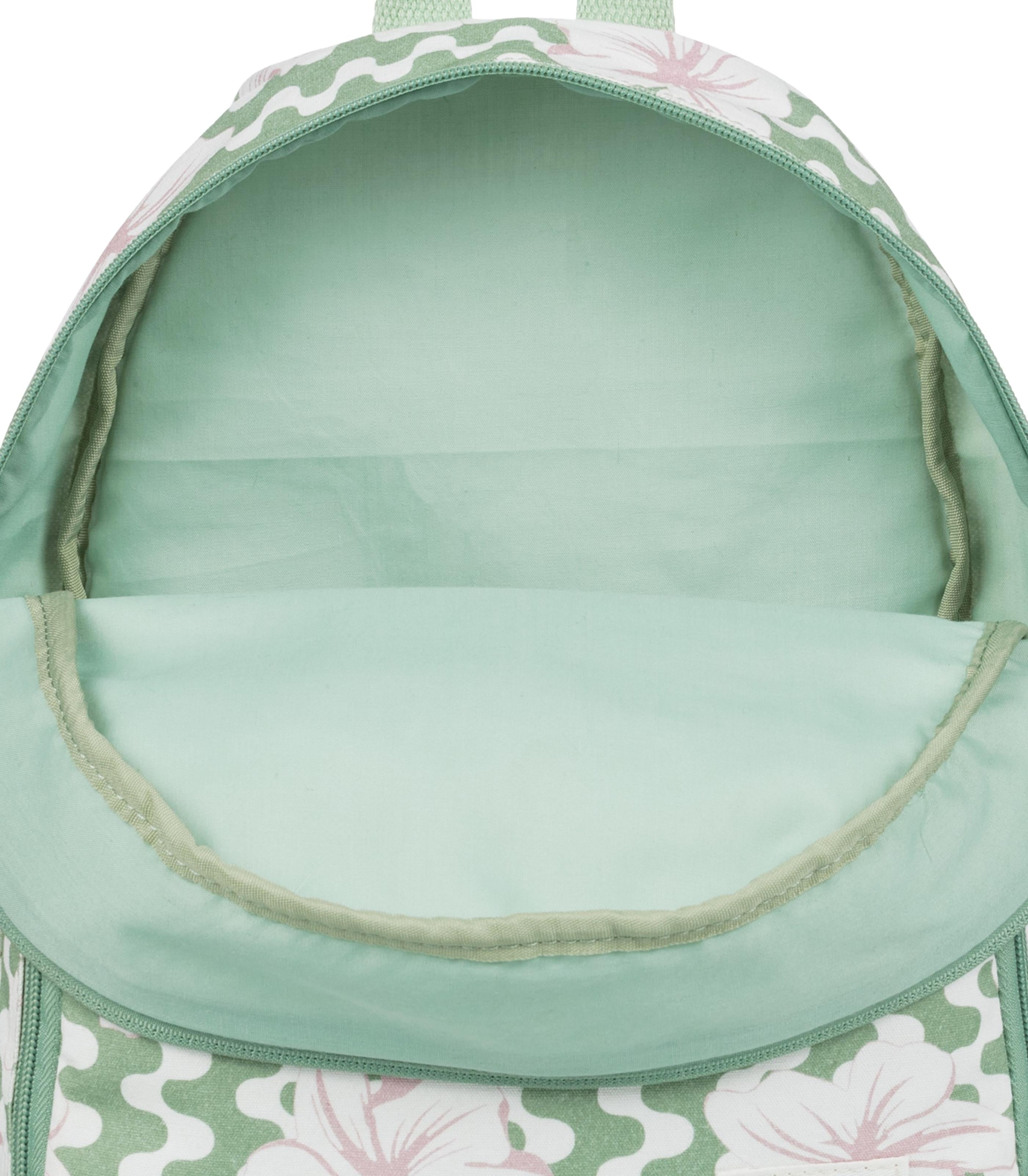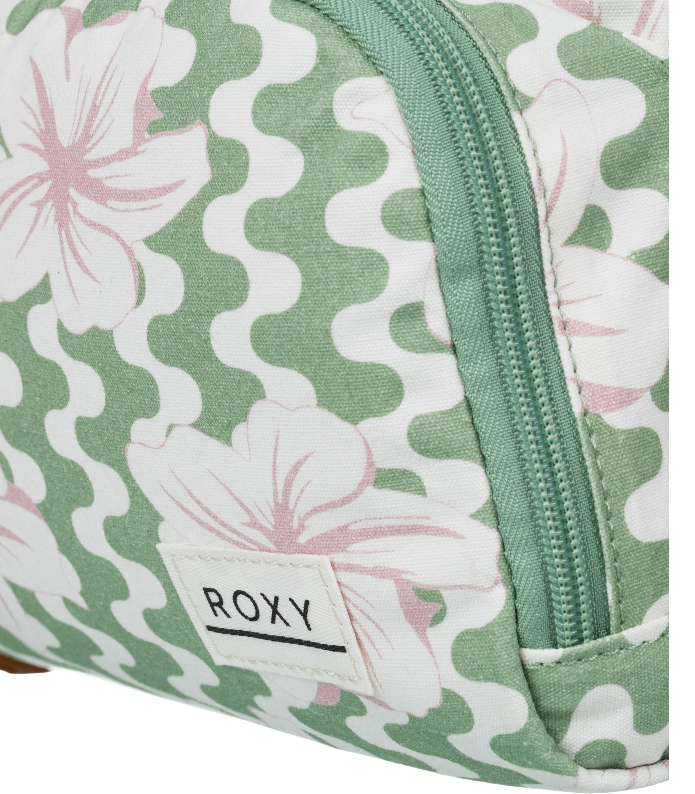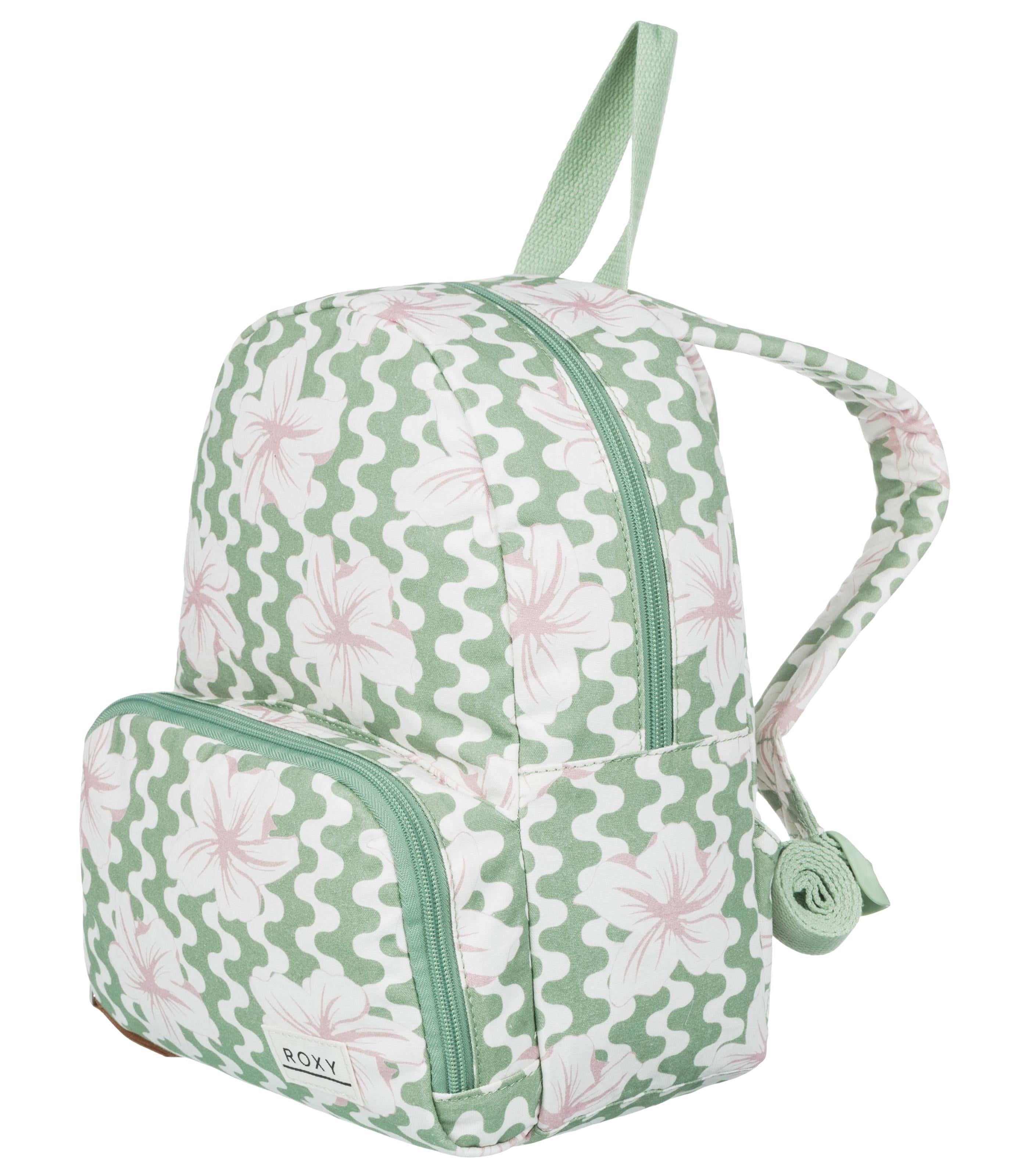 -up front pocket Straps: Adjustable padded shoulder straps Roxy cotton patch