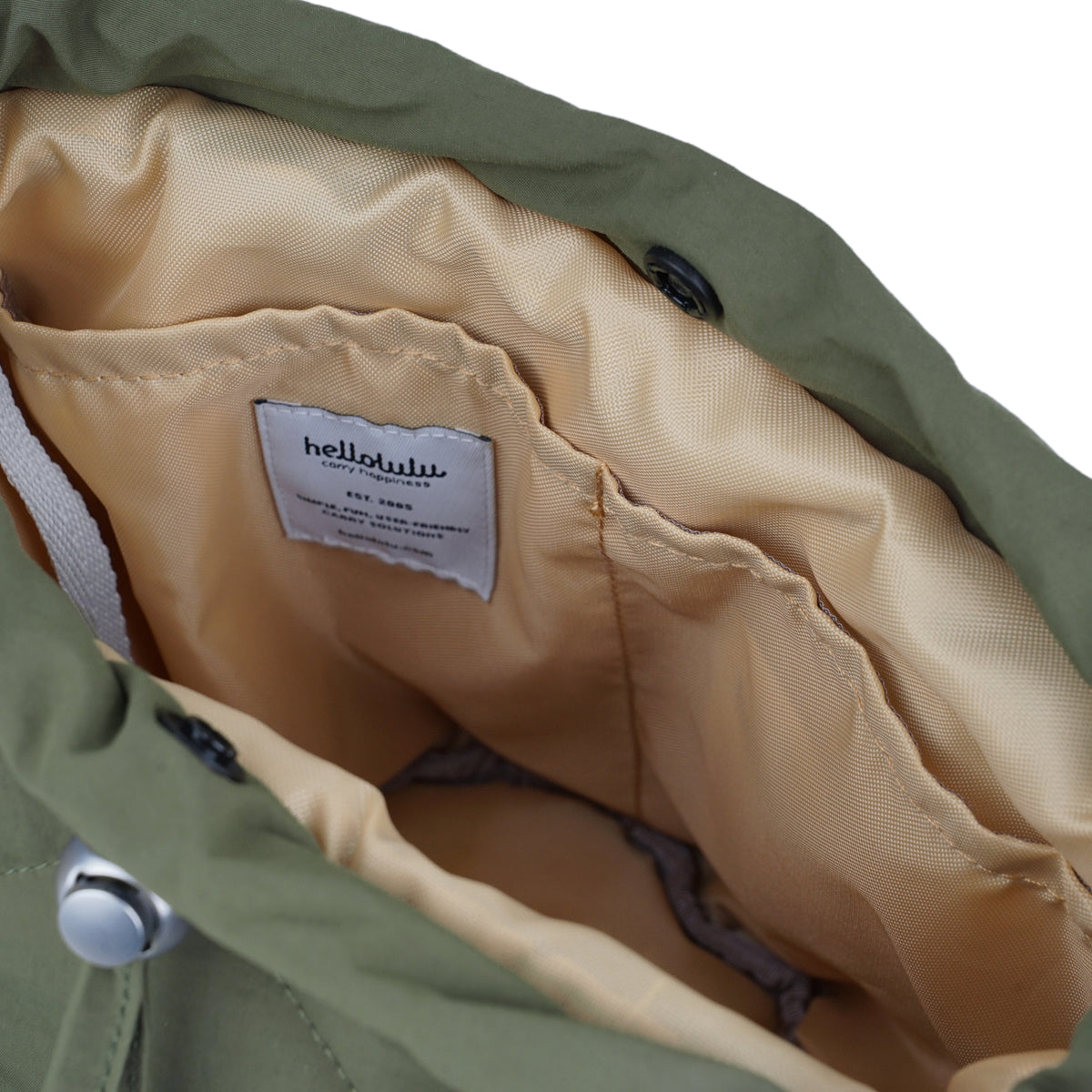 - Easy access main compartment with drawstring and snap button closures.