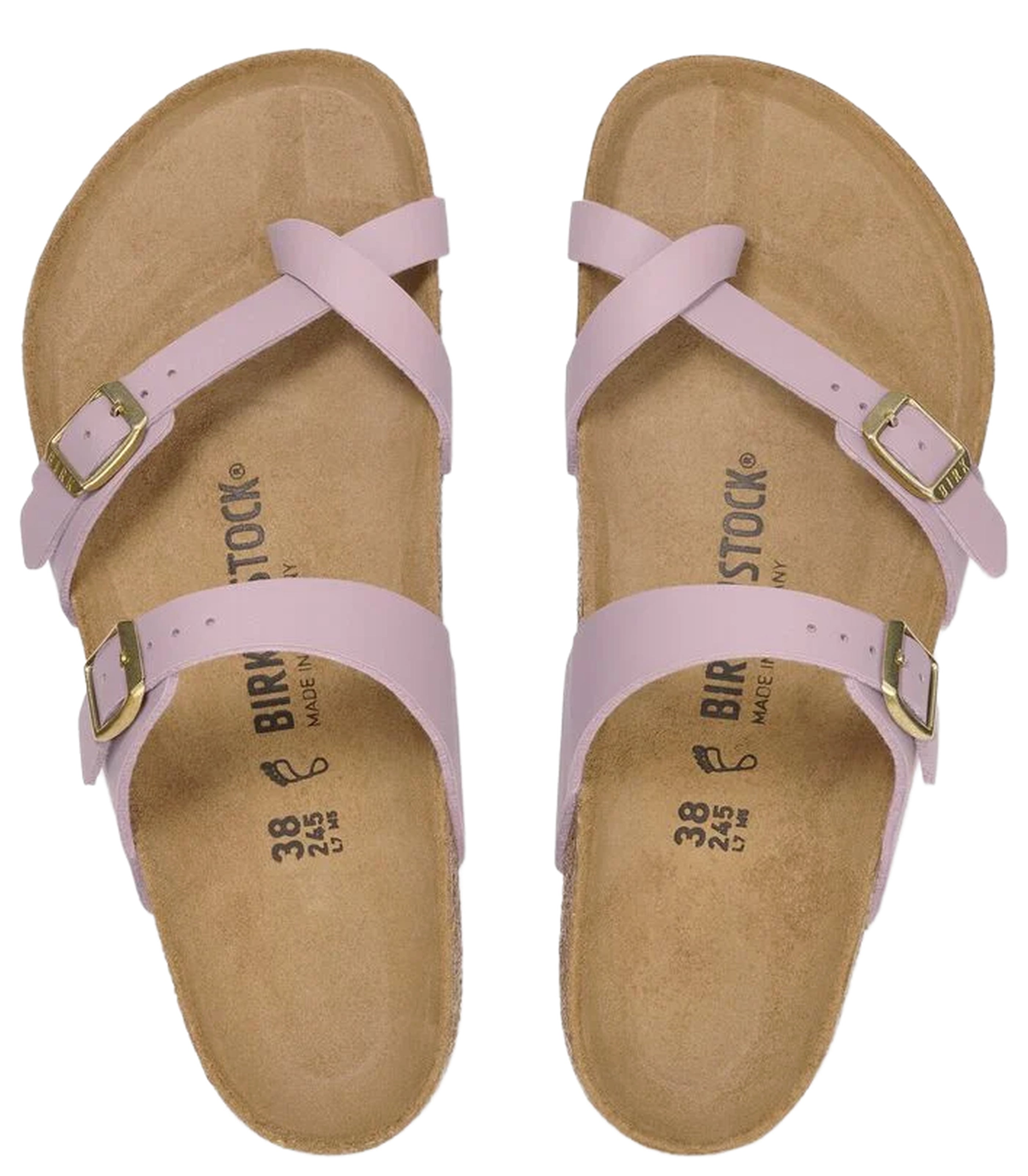 The BIRKENSTOCK Mayari thong sandal is a jaunty model with a toe loop. The impressive combination of design and wearability will see fashion-conscious men and women through the day with elegance and comfort. The upper is made from the skin-friendly, hard-wearing synthetic material Birko-Flor®.