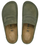 - Footbed made in Germany {n} The BIRKENSTOCK Naples Wrapped is the closed version of the popular semi-open Buckley clog. The moccasin style with striking stitching lends this sandal a distinctive and masculine appearance. Thanks to its two components, the sole promotes a firm and comfy footing. It comprises a cushioning midsole made from EVA and an outsole made from genuine rubber. Its natural design is down to the upper made from especially soft suede, which hugs the foot like a second skin.