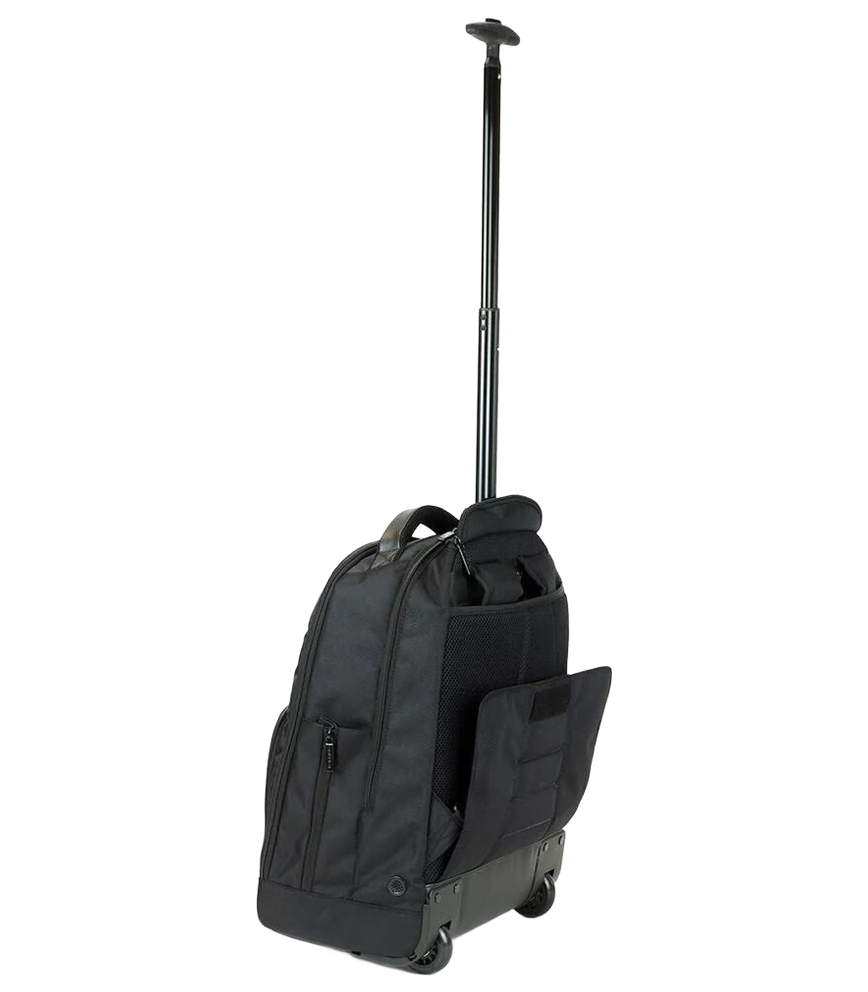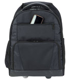 2 bags in 1 - the capacity of a backpack with the convenience of a roller case, generous compartments offer storage for laptop and IT accessories, paperwork and even overnight things. A padded laptop compartment compatible with laptops up to 15.6” with space for a tablet too. Padded shoulder straps and an adjustable sternum strap offer hands-free carrying and if the load gets too heavy simply convert to a roller with smooth in-line wheels and extendable trolley handle. A built-in cover fits over the wheels and shoulder straps to ensure comfort and clothing is protected when in backpack mode. Features