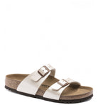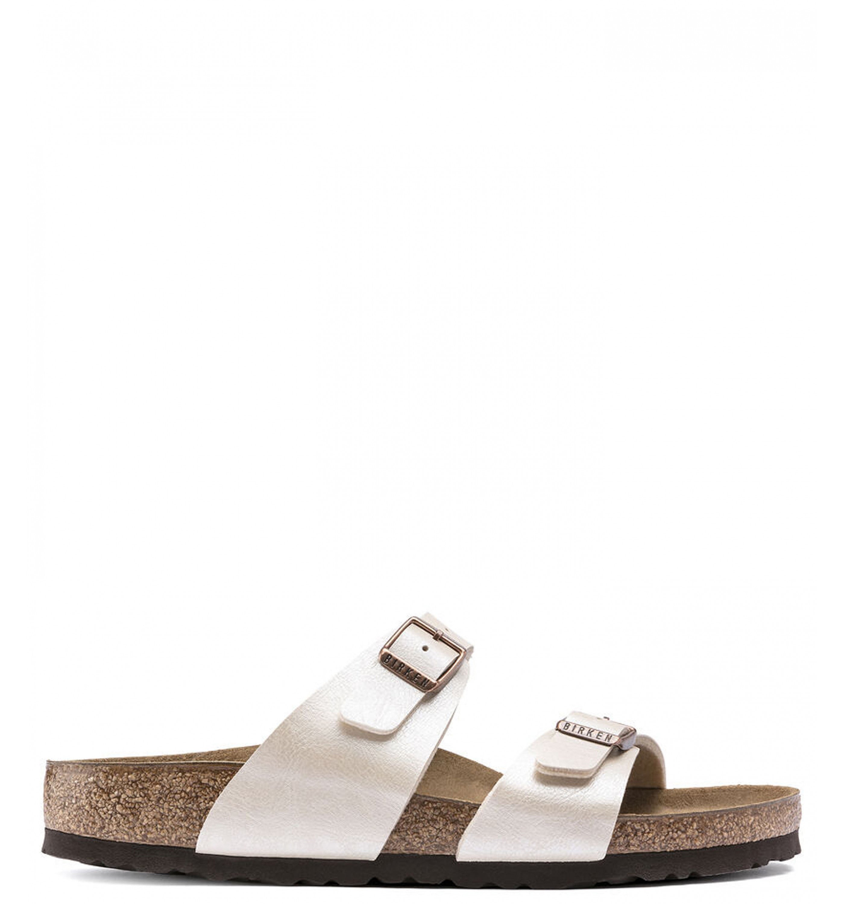 The BIRKENSTOCK Sydney proves that fashion and functionality can go hand in hand. With its two simple straps, it’s a real hit with women who want both high fashion and comfort. Here, we see the sandal with a silky sheen finish. The color-coordinated outsole and the buckles round off the shoe’s look of sophistication. The upper is made from the skin-friendly, hard-wearing synthetic material Birko-Flor® with a silky sheen.