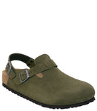 The BIRKENSTOCK Tokio clog is a variation of the classic Boston. The model is characterized by its ankle strap and can easily be worn any time of the year. The upper is made from especially soft suede which hugs the foot like a second skin.