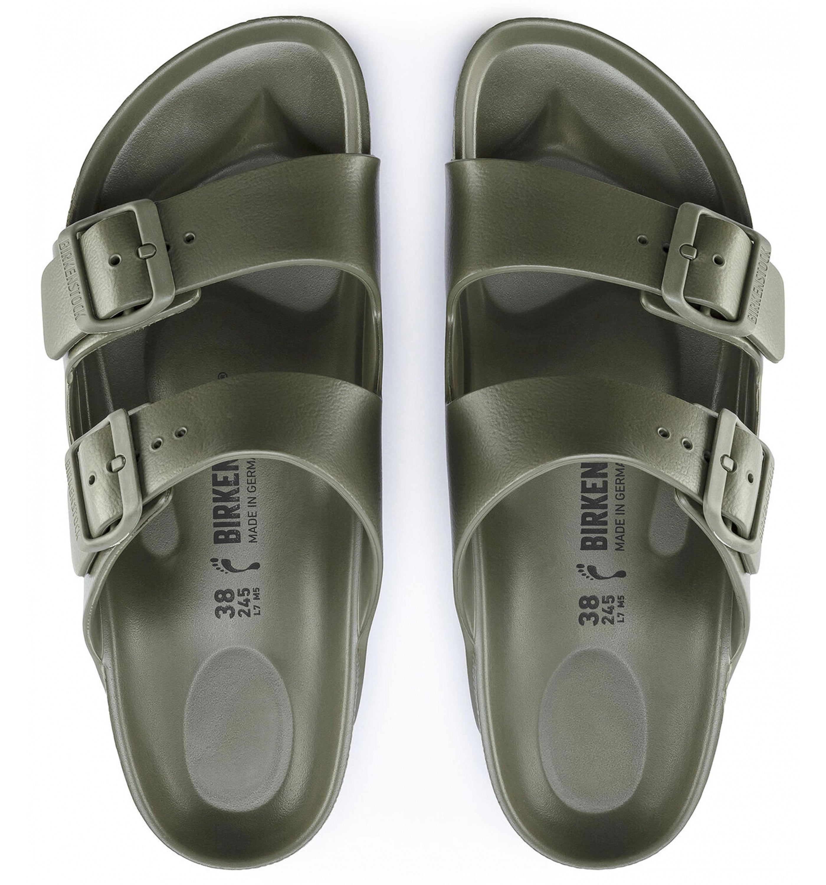 The legendary two-strap design from BIRKENSTOCK - the Arizona. Modeled on the cork original, this sandal is made from ultra lightweight and highly flexible EVA. These sandals are shock absorbing, waterproof, and skin-friendly. Wear them at the beach, in the garden, or around the gym and after workouts. It's the perfect addition to your classic BIRKENSTOCK sandals.