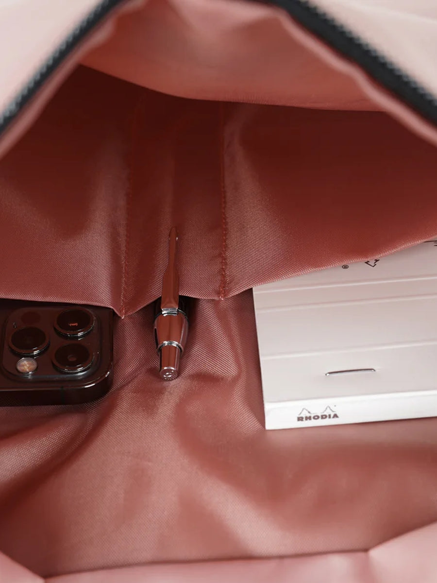 Be cool and be you, this is ARI! ARI, a laptop shoulder bag can carry as handheld or shoulder bag. The front is also uniquely designed and features a mesh pocket. This mesh pocket is great for storage but you can also use this pocket to display things like plushies, photos, pins, cards, and more! Extra padded lining under the zipper opening enhances the protectivity of the case. With two-sided zippered pocket: mesh pocket at the front, not only for storage but can also use display your taste like hand cream, photos, pins, cards, and more! The other side with pen slot and other compartments helps the better organize personal belongings. Just feel free to carry in the way you want!