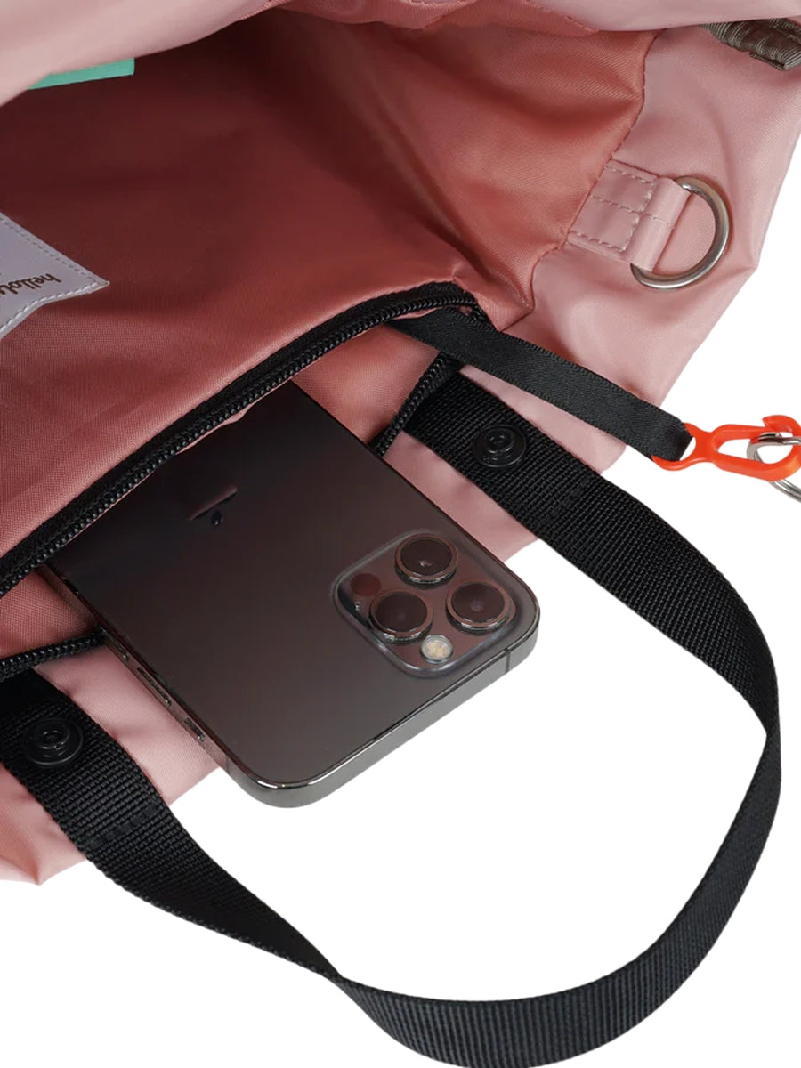 - Internal zippered pocket with key clip.