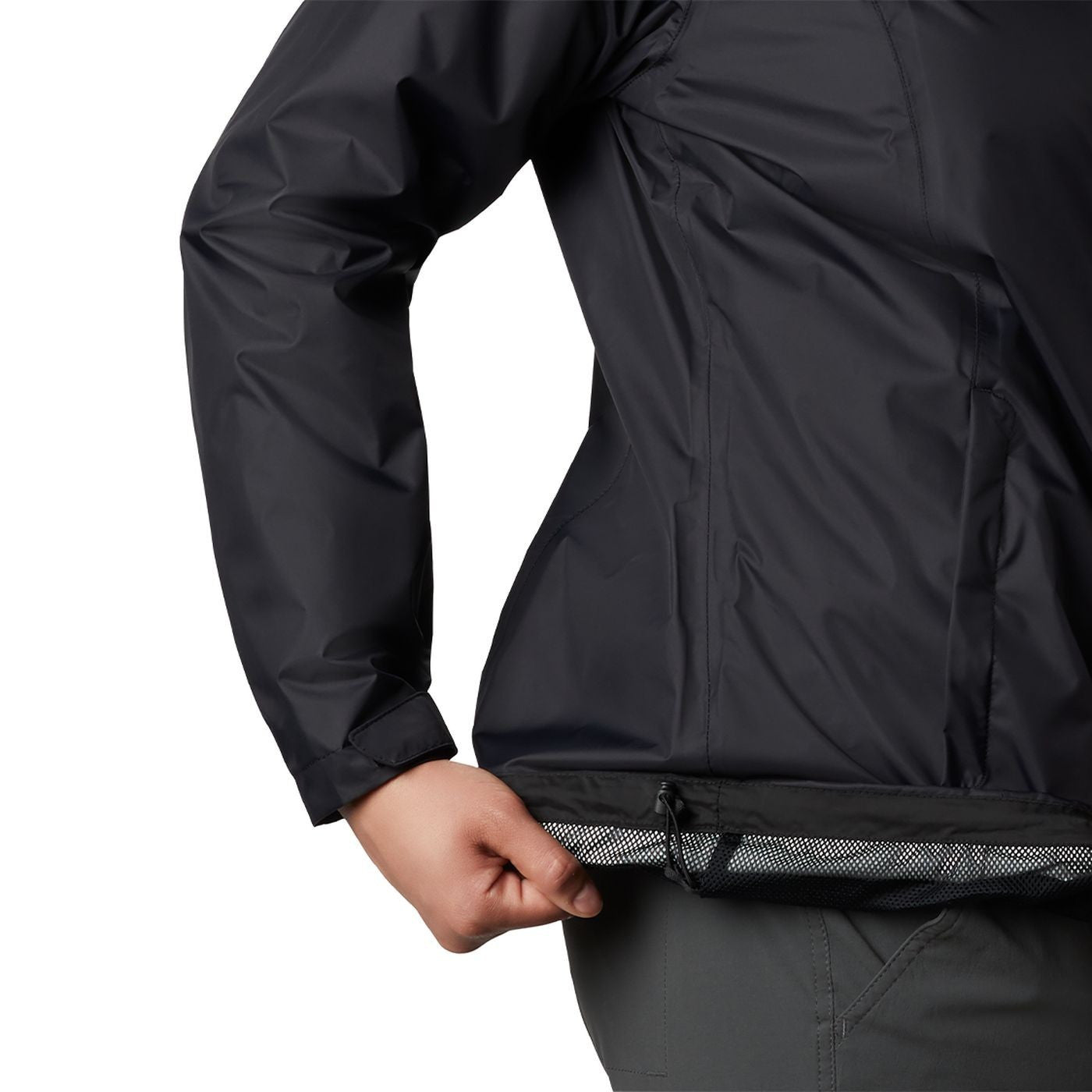 WATERPROOF With seam-sealed construction and a soft mesh lining, this jacket is waterproof and breathable. An adjustable storm hood and hem provides extra coverage. PACKABLE The jacket folds up into one of its own zip-up hand pockets for easy storage. Omni-Tech™ waterproof/breathable fully seam sealed Attached, adjustable storm hood Drawcord adjustable hem Zippered hand pockets Packable into hand pocket Center Back Length: 26" Uses: Trail Imported