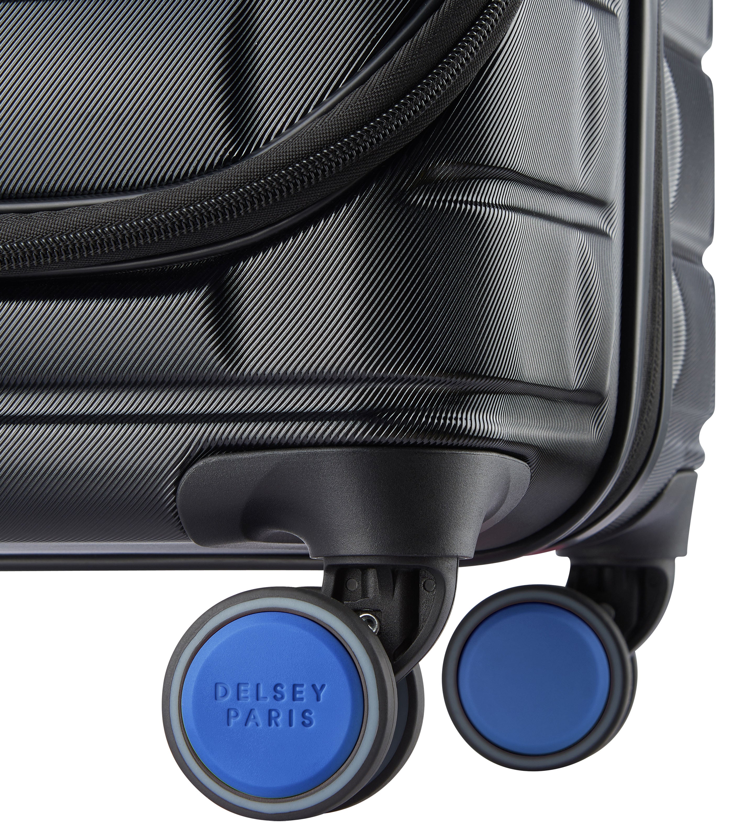 - Customizable wheel cover set for Delsey Paris collections with luggage tag