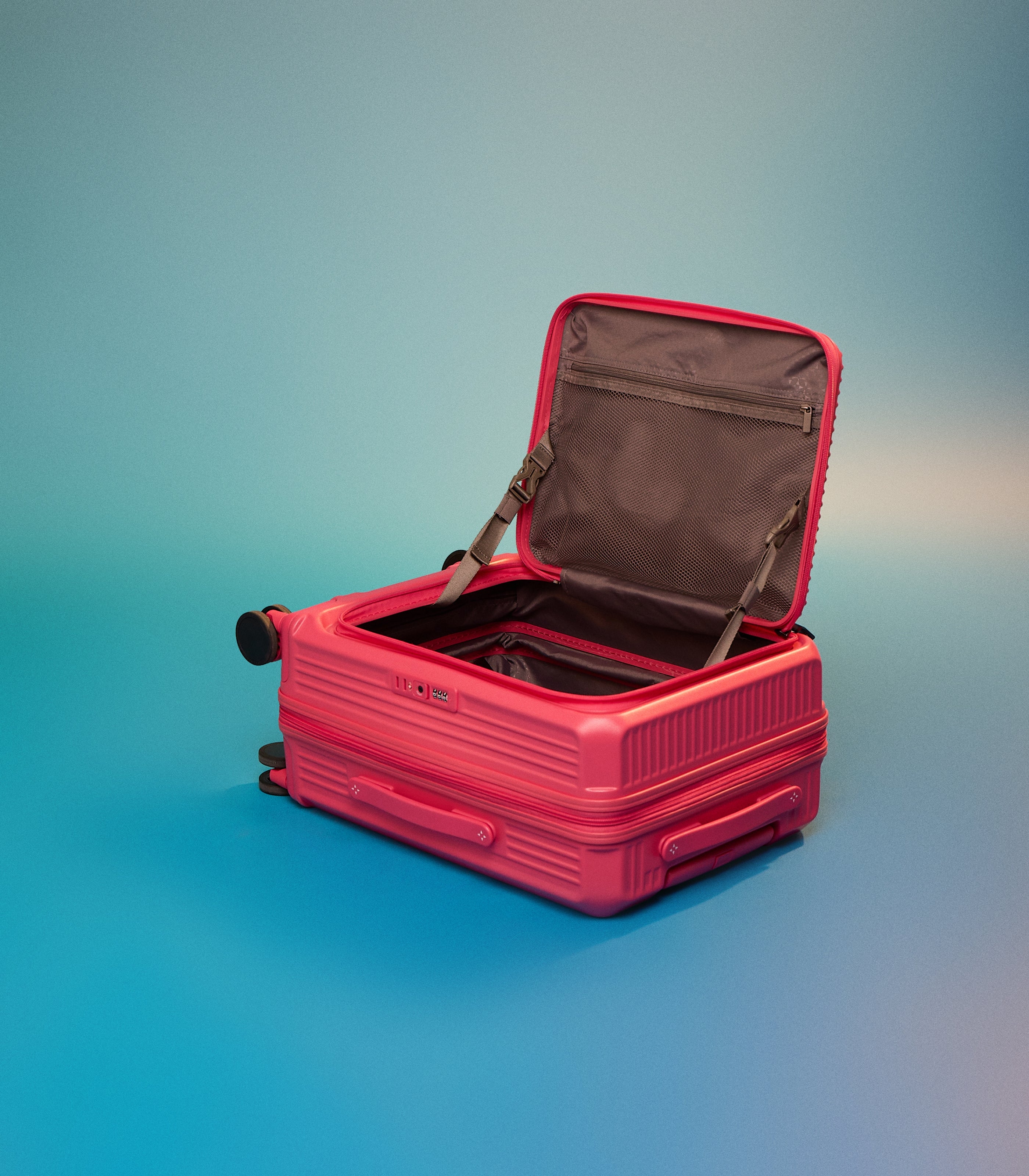 ● Keep belongings secure with TSA Lock and Security Zipper. {n} Glide effortlessly on smooth twin wheels for stable, easy mobility. {n} Pack more when needed with a +4 cm expandable hardcase. {n} Travel protected with a 100% polycarbonate shell that’s strong yet lightweight. {n} Stay organized with compression straps and mesh dividers. {n} Stay comfortable in any space with a front panel opening that gives you quick access, even in compact settings. {n} Carry with ease using durable top, side, and bottom handles