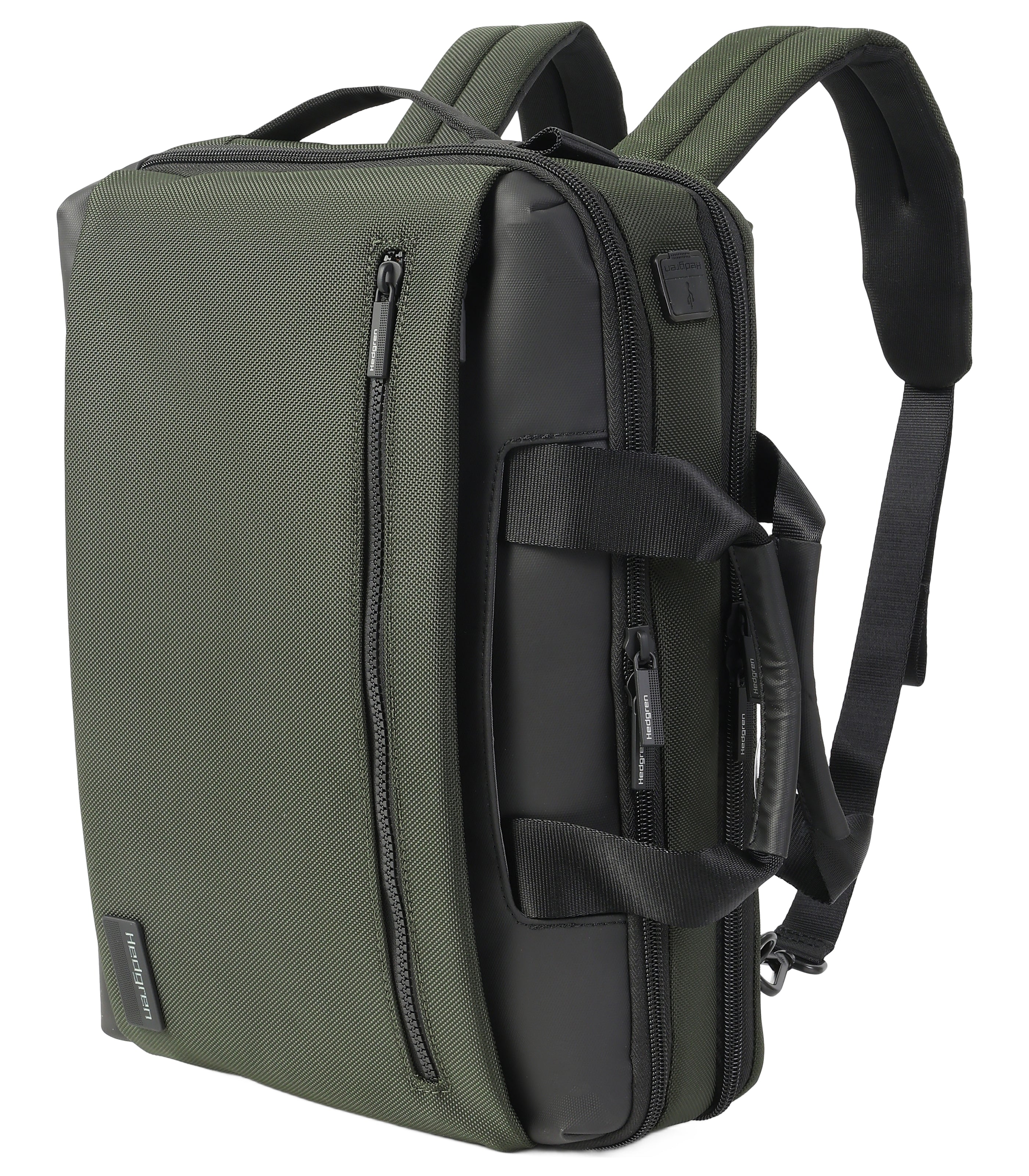 Taking multi-tasking to the next level, our DISPLAY briefcase is a hard-working, stylish bag that converts to a backpack when needed. Simply add or remove the detachable straps and carry it your way! With functional details such as a key chain and RFID protection, you’ll find pockets for everything. There’s a padded space for your laptop, as well as a pocket for your phone, tablet, cards, and loose change. You can stay charged up and ready for business with its USB port and you can attach the bag to a luggage handle with its smart sleeve.