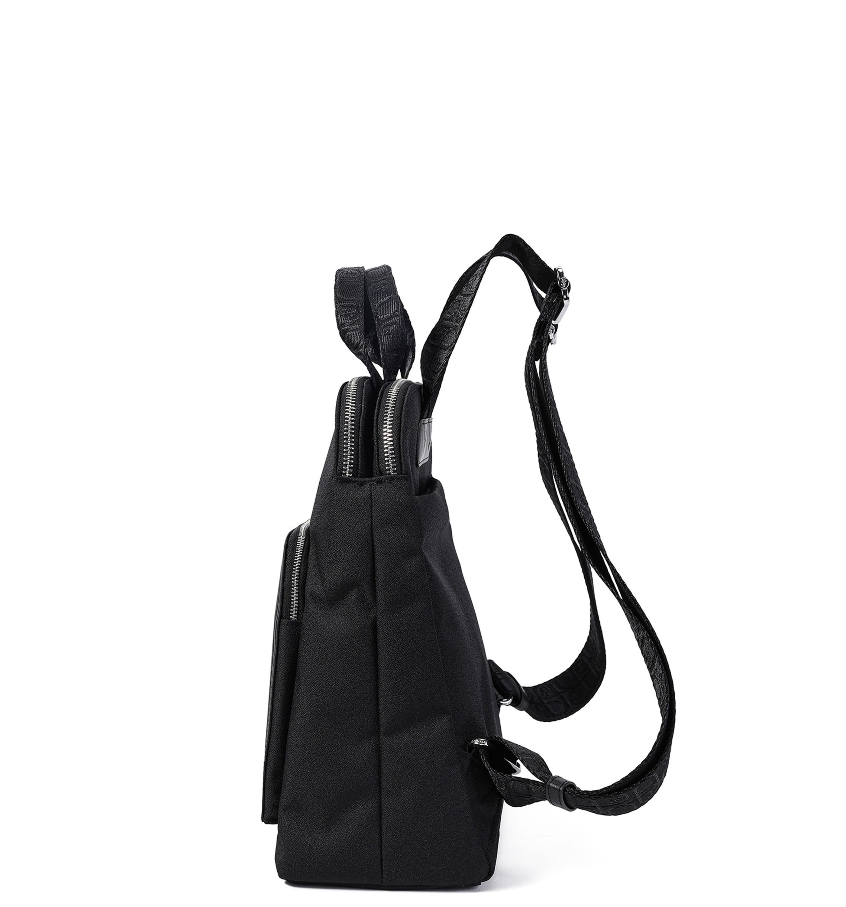 -Safety back pocket with recessed zipper opening and close body positioning.