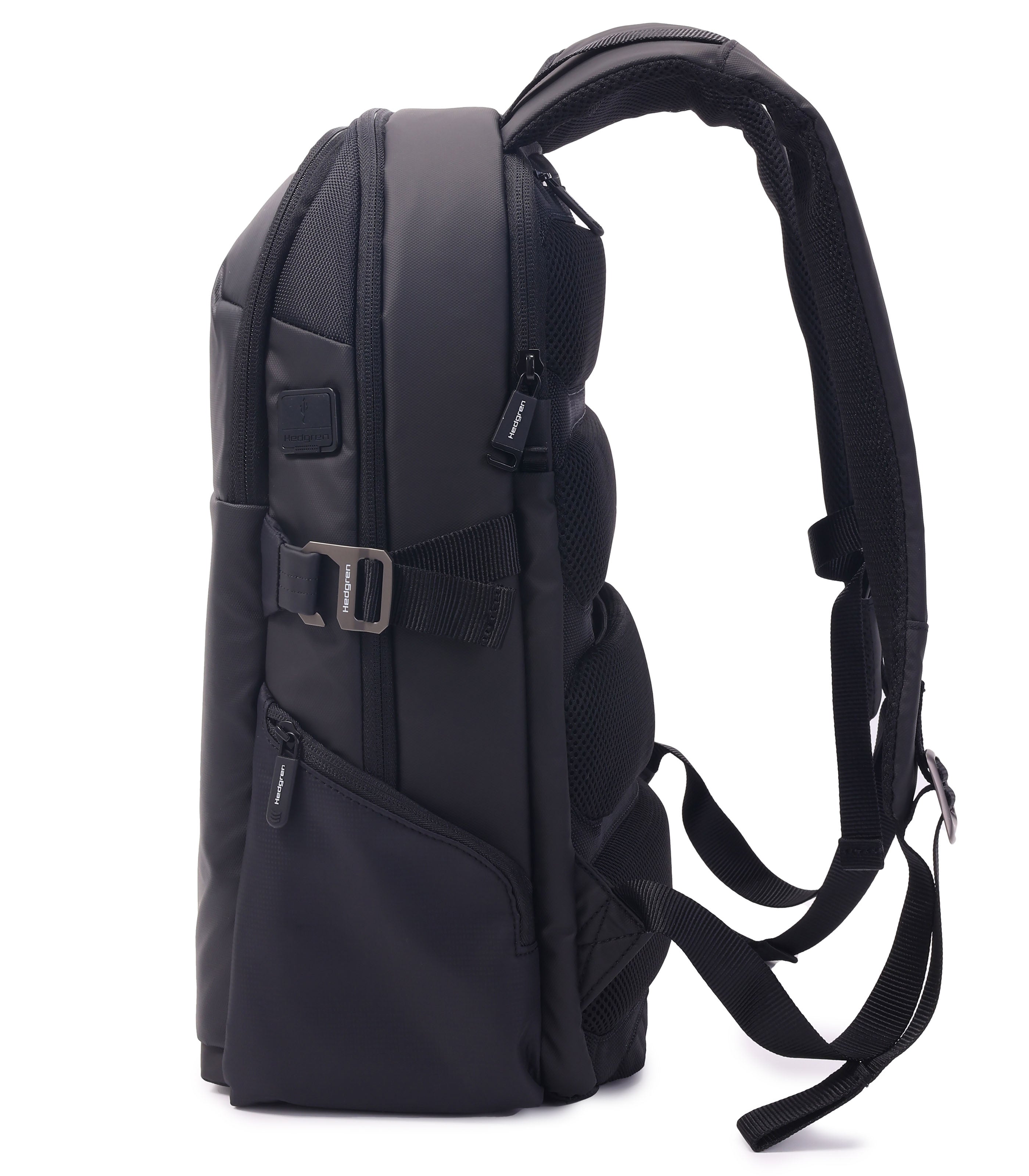Run for that train in comfort and style with the RAIL backpack. Designed for life on the right side of the tracks, this spacious bag boasts three A4 compartments, one dedicated to your laptop, giving you plenty of room for all your work essentials. This bag comes with an exciting new Hedgren feature – the integrated rain cover. Keep your contents dry when you are standing on the platform in the rain with this water-repellent covering that easily detaches to allow you to dry it off when you get to your destination. Other functional characteristics include the key hook and zip safety hook, as well as RFID protection and a USB port.