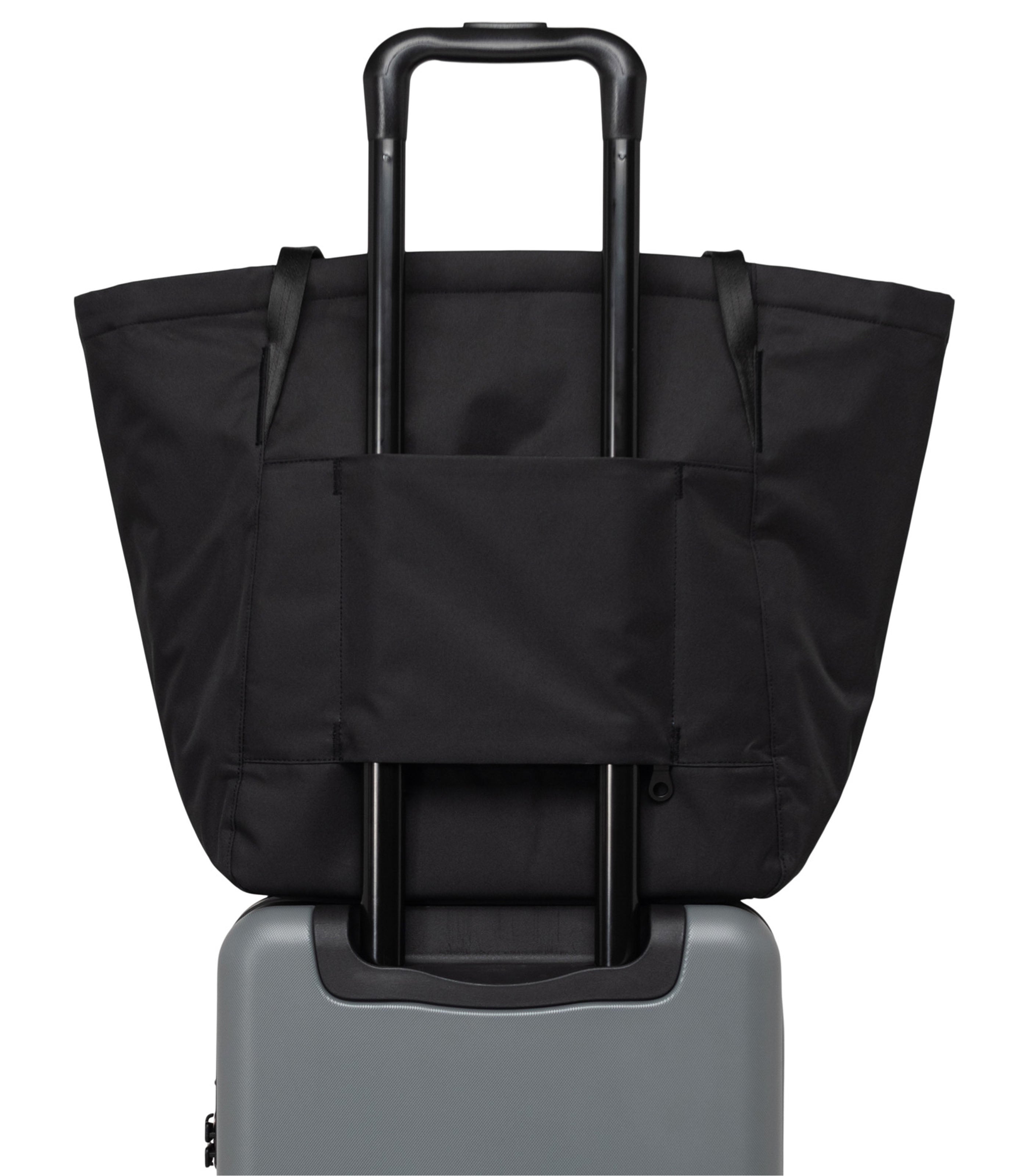 Modern form, maximum function. Made with EcoSystem™ Recycled Twill and reclaimed leather, the Joana tote is packed with design fundamentals, including a padded laptop sleeve, detachable pouch and trolley sleeve for daily use.
