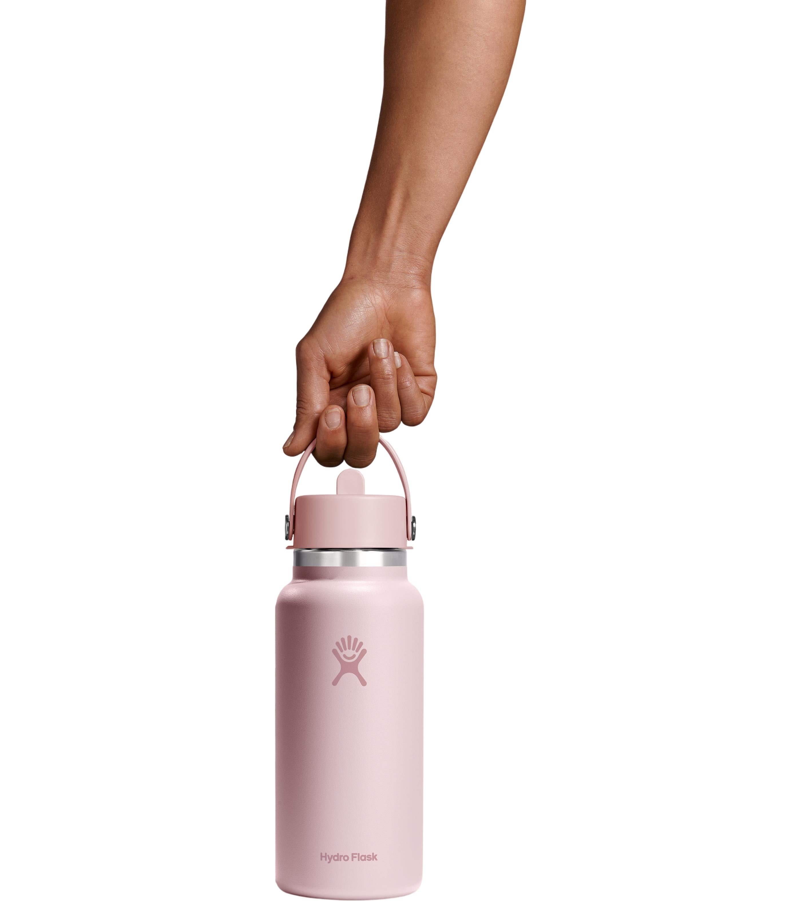 Flip it and sip it. Flip it and sip it with the Hydro Flask 32 oz Wide Mouth Bottle With Flex Straw Cap. With a comfortable, flexible handle, the closeable, leakproof straw cap is easy to open and close with one hand, for on-demand hydration. Double-wall insulation keeps drinks cold up to 24 hours for cool refreshment. The insulated bottle easily fits ice cubes and is dishwasher safe.