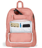 '- One large main compartment - Dual side water bottle pockets - 15 inch laptop sleeve - Front utility pocket with organizer - Front stash pocket with quick access flap closure - Iconic straight-cut, padded shoulder straps - Exterior top zippered stash pocket - Fully padded back panel - Web haul handle