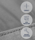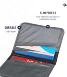 Slim-profile RFID card holder for protecting your information from digital skimmers. Includes four internal card sleeves to safely hold all your most valuable cards and information and lined with RFID-proof fabric for digital credit card protection.Anti-theft features: RFID blocking lining material Additional features: Lined with RFID-proof fabric for digital credit card protection Sturdy 210D® exterior Four internal card sleeves Please note: RFID-protected products will only offer protection against scanning of the very low-power signal emitted by a credit card or passport chip. They will not block a higher power radio signal (for instance a Smartphone or a Car-Key or Garage remote)