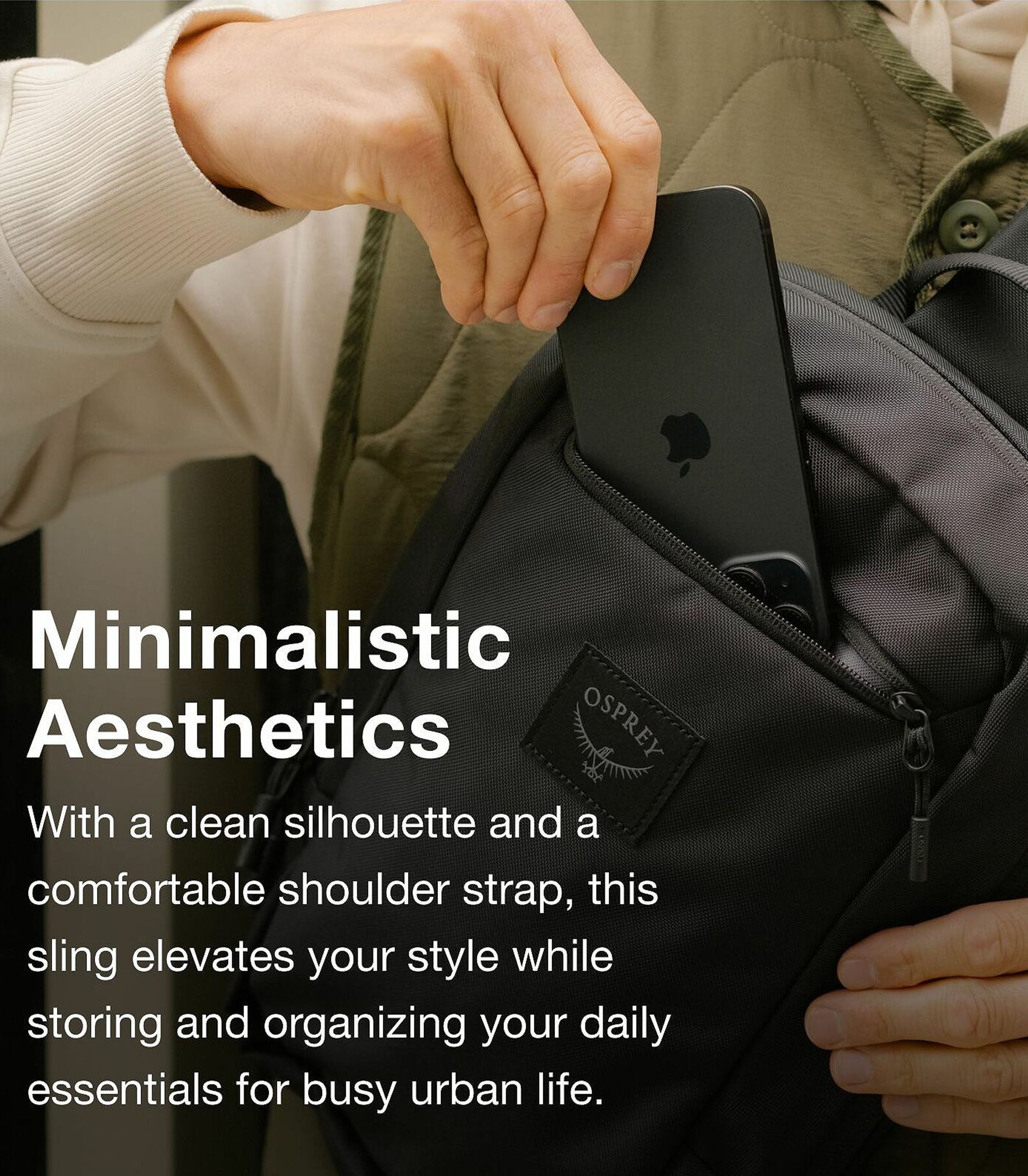 Urban Versatility Stylish enough for everyday, around-town carry, yet professional enough for a business trip. Minimalistic Aesthetics Offering clean and minimal silhouettes that reflect personal identity and lifestyle. bluesign® PRODUCT This product meets bluesign® PRODUCT requirements, which means materials and components have been selected that adhere to rigorous environmental and social criteria during production. FABRIC MAIN bluesign® APPROVED, 100% recycled 840D ballistic polyester, DWR treatment made without PFAS LINING bluesign® APPROVED, 100% recycled 200D polyester, DWR treatment made without PFAS WARNING: This product can expose you to chemicals including dimethylformamide, which is known to the State of California to cause cancer. For more information, go to oehha.ca.gov/proposition-65/about-proposition-65Elevate your commute, errands and travels with the all-new, versatile Aoede Sling. This stylish around-town carry features a minimalist silhouette and a comfortable shoulder strap for all-day wear. Stash your essentials in a large main pocket with a padded sleeve that fits most devices up to 8", plus a quick-access phone pocket. A bluesign® PRODUCT. Features Padded, ambidextrous shoulder strap Large main compartment and additional phone pocket Padded sleeve fits most devices up to 8 in
