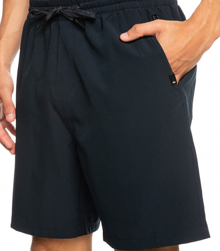 Men's amphibian board shorts featuring recycled Repreve 4-way stretch polyester made from plastic bottles, DryFlight water-repellent hydrophobic coating, and finished with an 18" outseam for a short length.