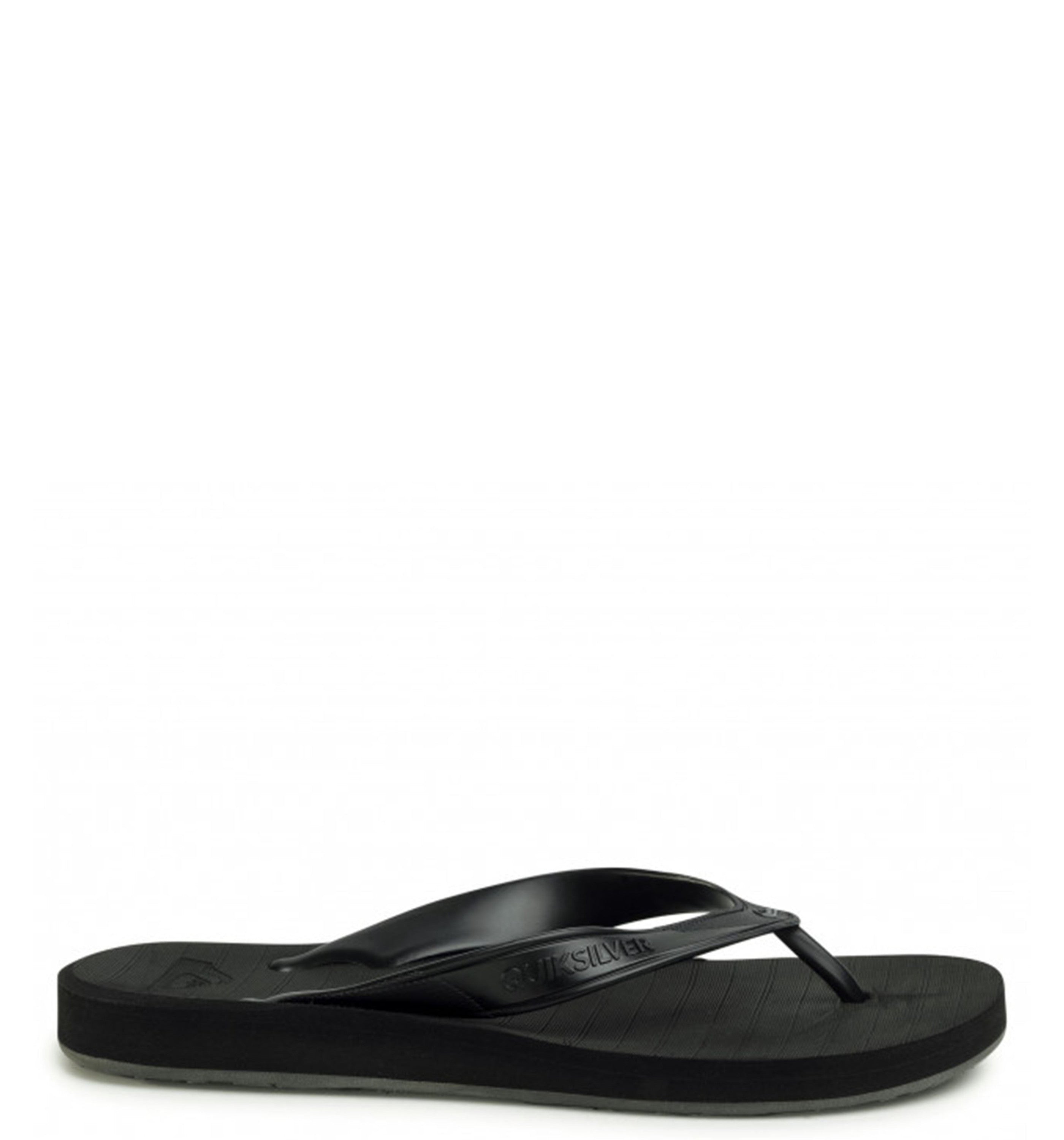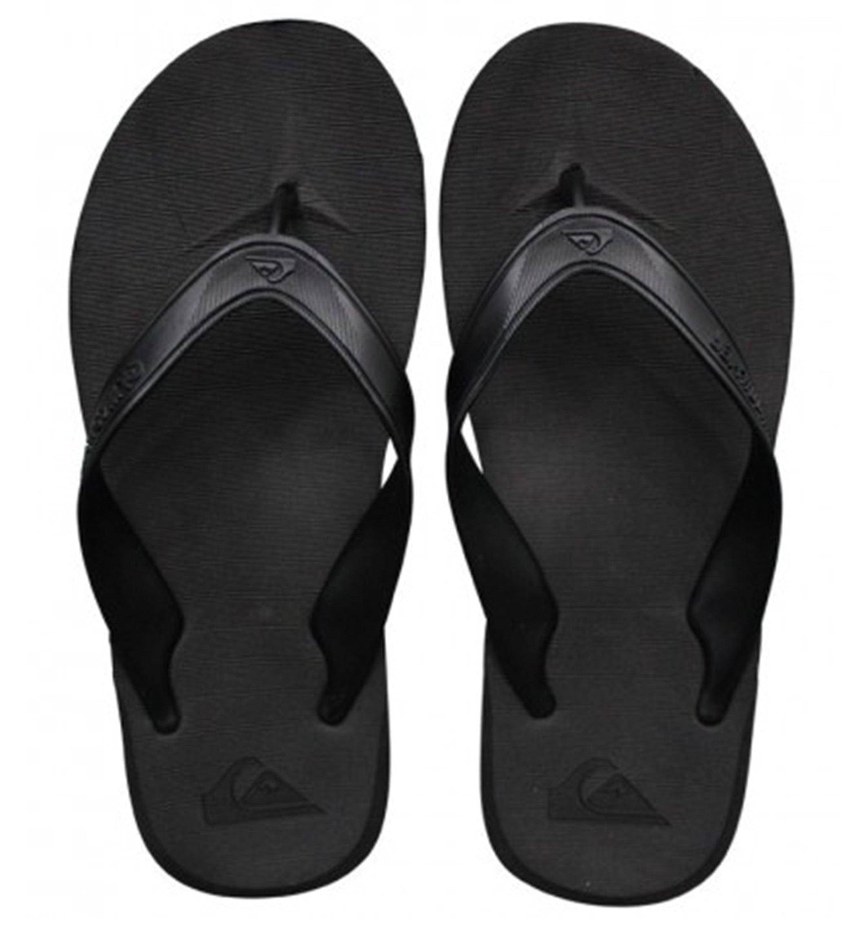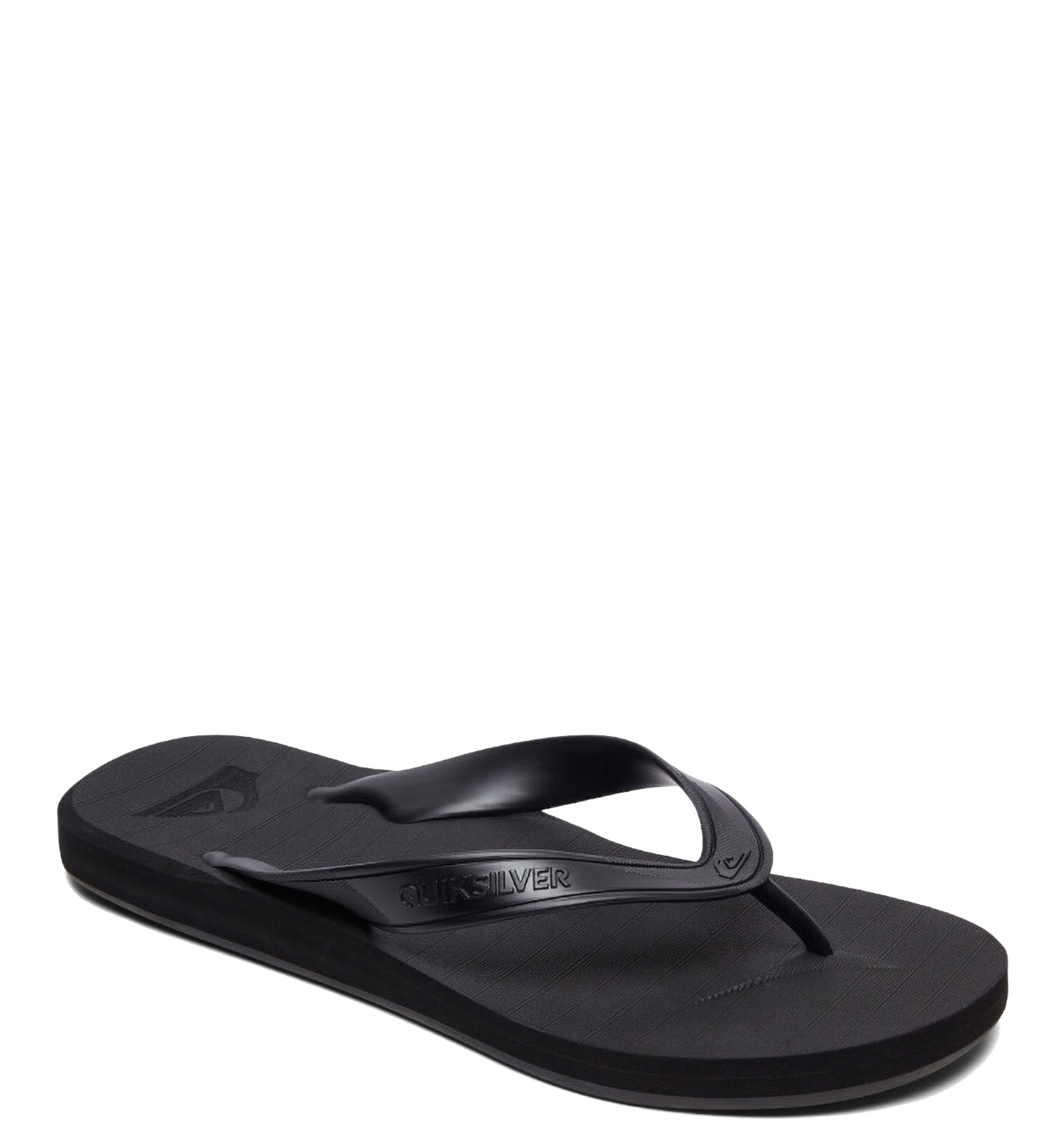 Men's flip-flops fashioned with a soft 5-point synthetic rubber strap with Quiksilver logo, and a compression moulded and textured EVA footbed, and finished with a moulded contour midsole with built-in arch, heel and forefoot support.