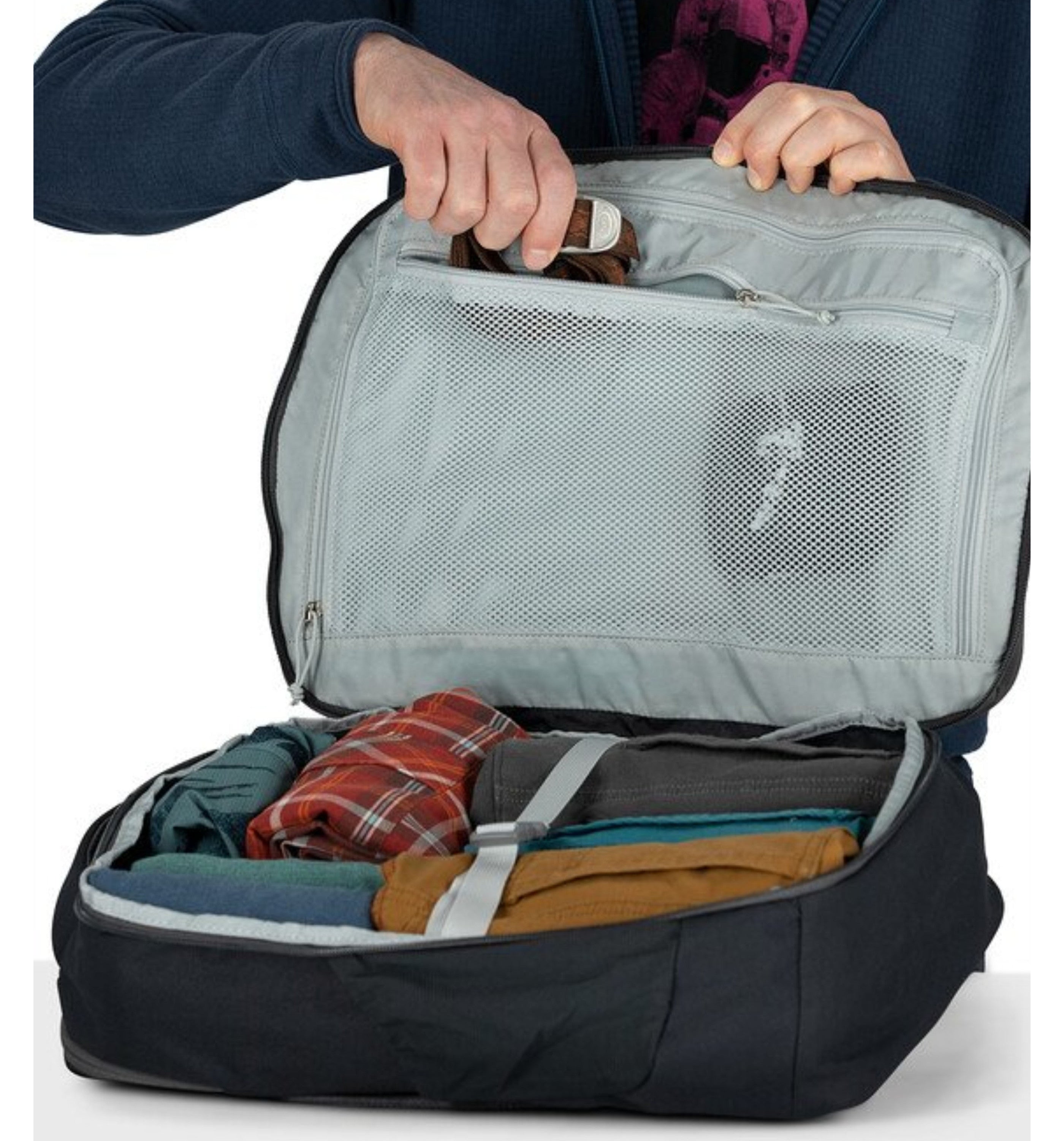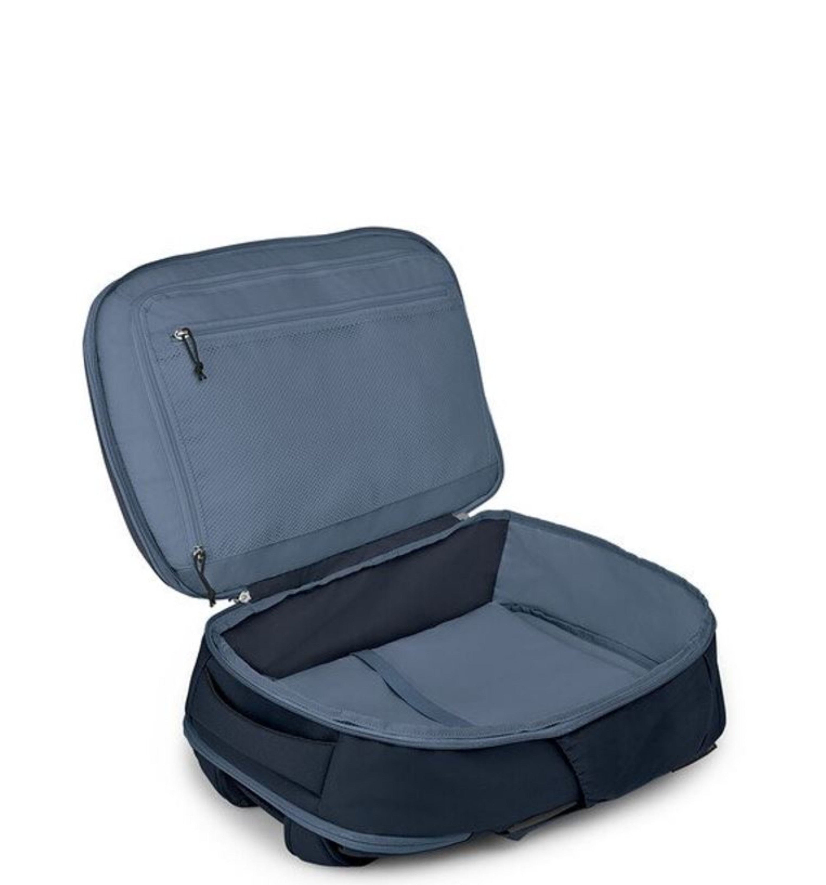 - Suitcase-style, full zip opening with mesh divider