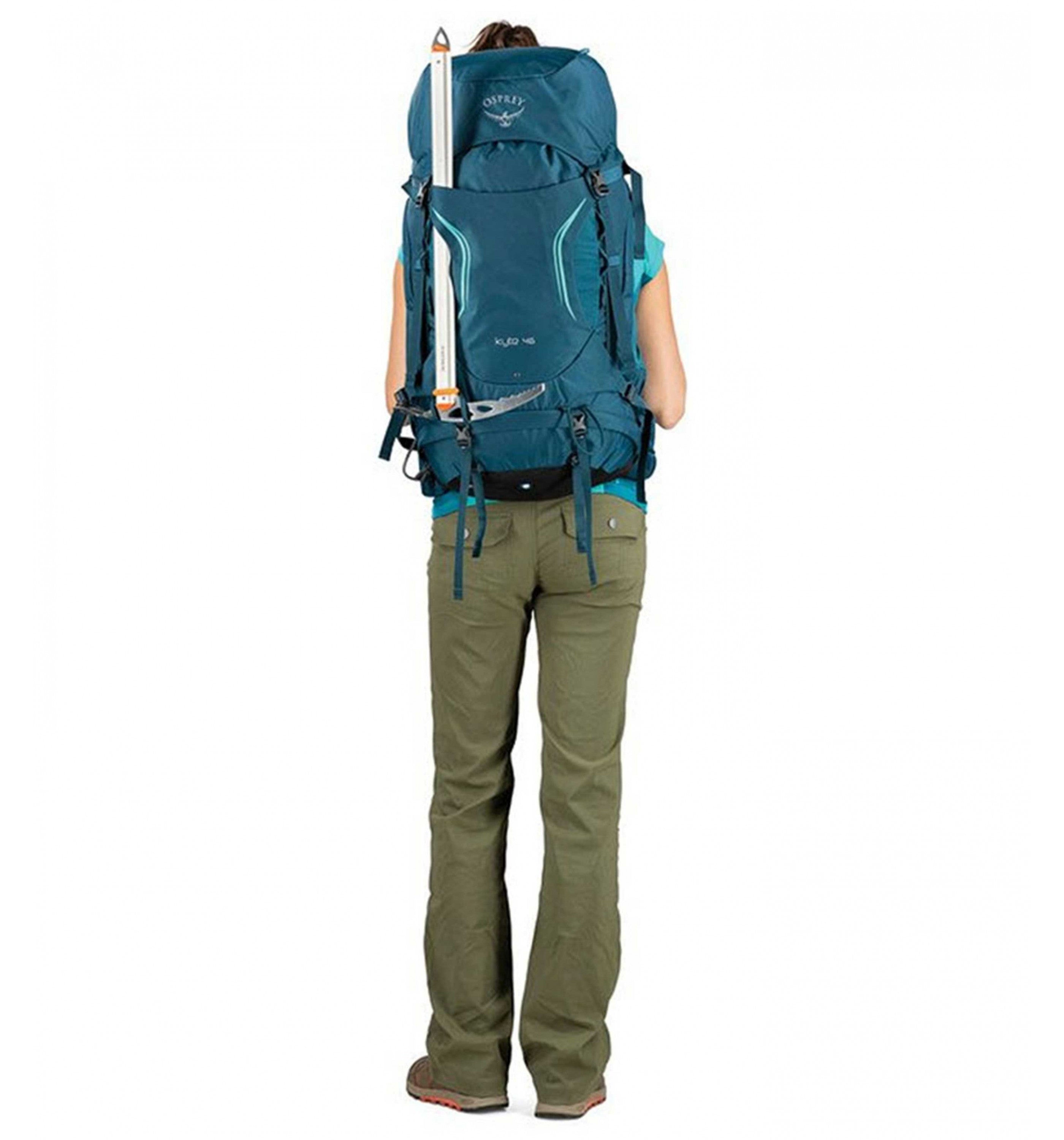 The women’s-specific Osprey Kyte 46 is a chameleon. With a separate zippered sleeping bag compartment and external sleeping pad straps, it’s a fully functional overnight pack. Or cinch down the StraightJacket™ side compression straps and take it out for a day of climbing at the local crag.