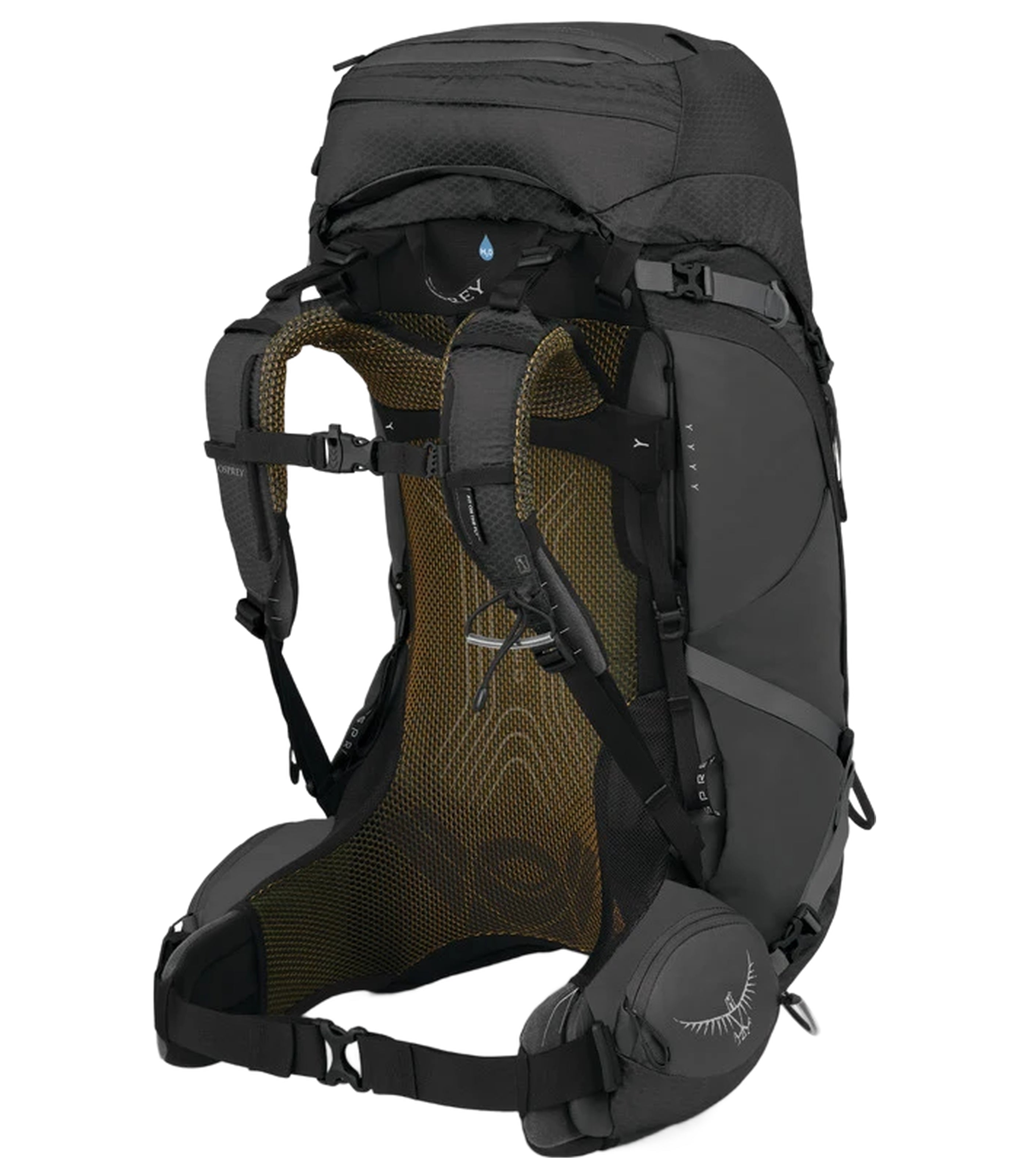 Included raincover made with PFC/PFAS-free DWR and bluesign approved materials. Curved zip access on each side panel. Floating top lid with lash points. Fabric reinforced front shove-it pocket. Tall dual-access side water bottle pockets. Dual upper/lower side compression straps. Dual zippered hipbelt pockets. Dual ice axe loops with upper compression strap capture. Zippered sleeping bag compartment with removable divider. Removable sleeping pad straps. Internal hydration reservoir sleeve with center back exit port. Stow-on-the Go trekking pole attachment system.
