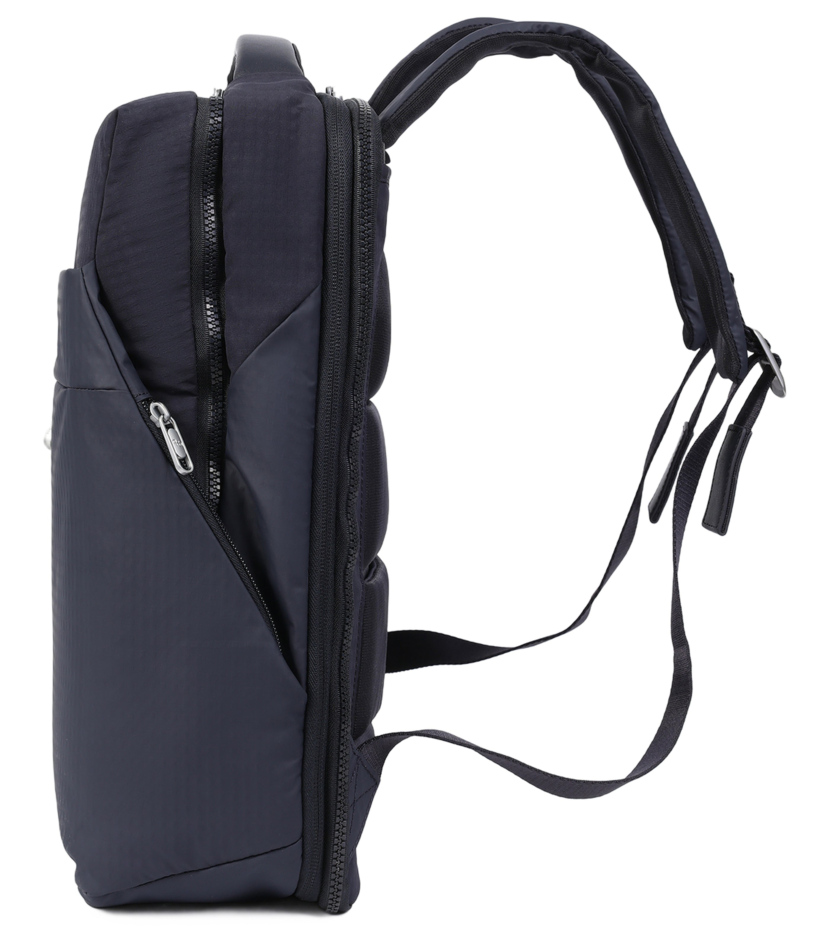 - Ergonomic back panel with integrated safety pocket and smart sleeve