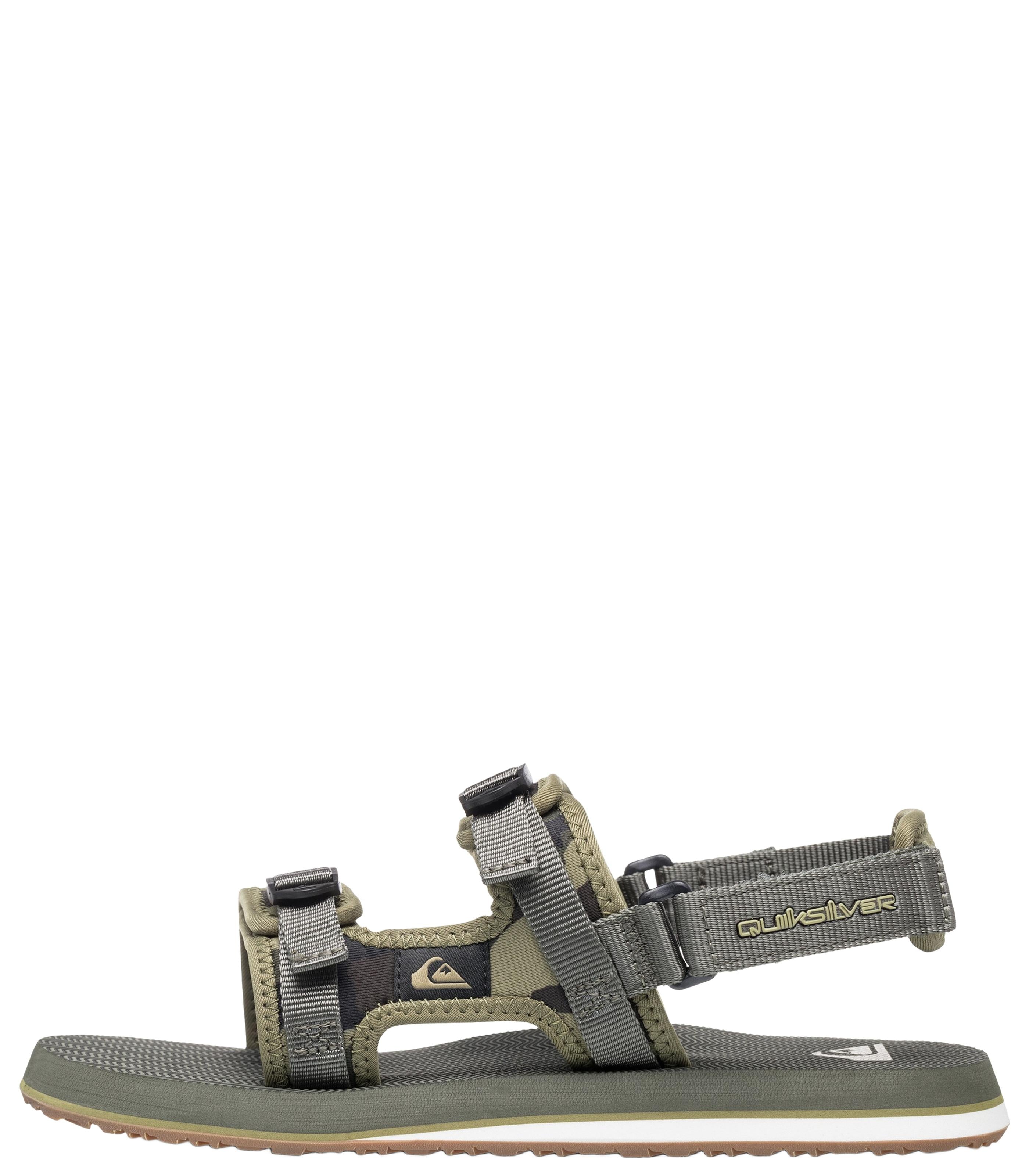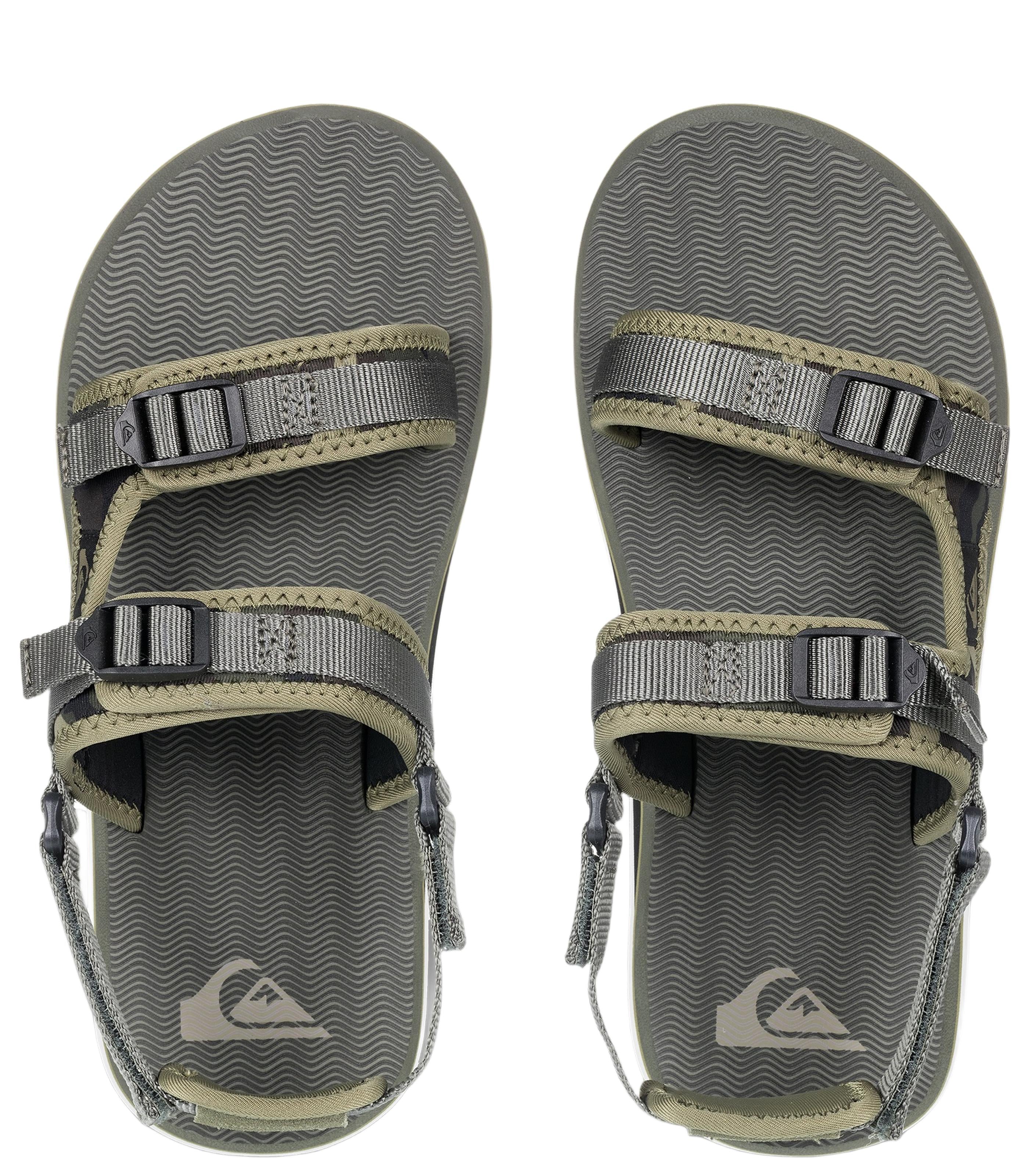 - Style: Men's Sandals - Upper Material: Textile - Outsole Material: Rubber - Fabric: Completely adjustable water-friendly neoprene upper fabric with removable heel strap - Midsole: Dual-density Eva midsole for comfort and support - Anatomically correct arch support - Outsole: Repeating Quiksilver logos integrated into a multi-width herringbone traction pattern on a durable gum rubber outsole - Other Features: Lasered Eva deck for added slip resistance