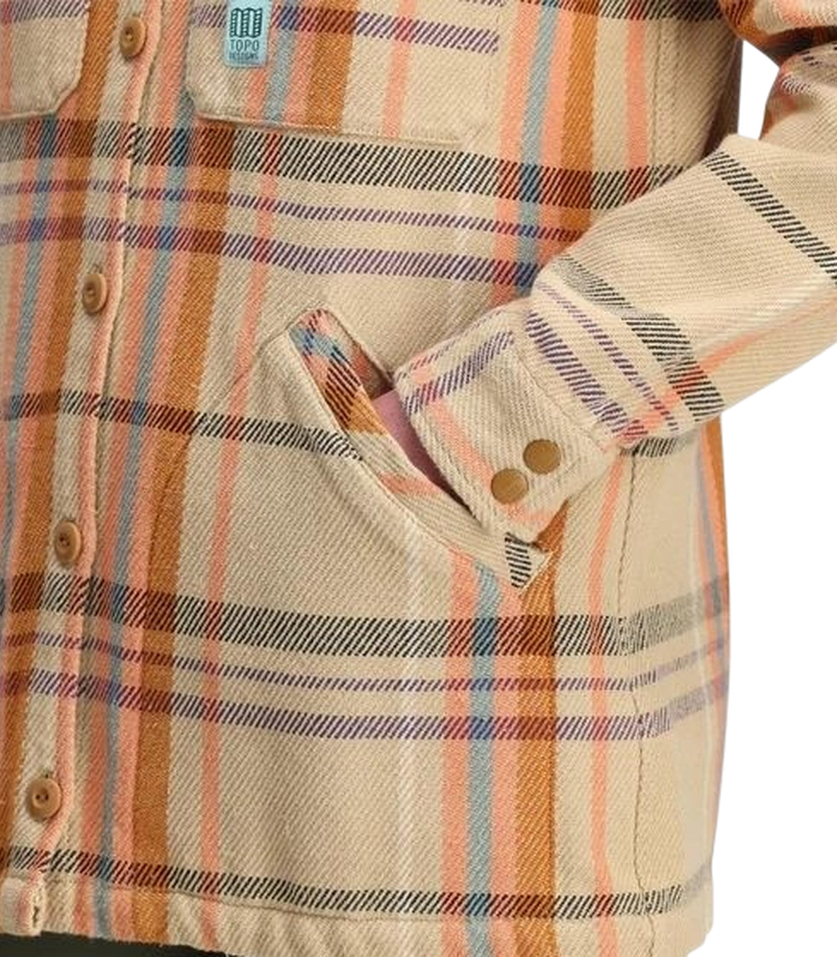 Made with 100% organic heavyweight cotton yarn overbuilt stitching and featuring a longer overshirt fit the Mountain Shirt Jacket is a functional favorite layering piece. Accented with bold colors and custom plaid patterns this piece is a standout in cooler weather.