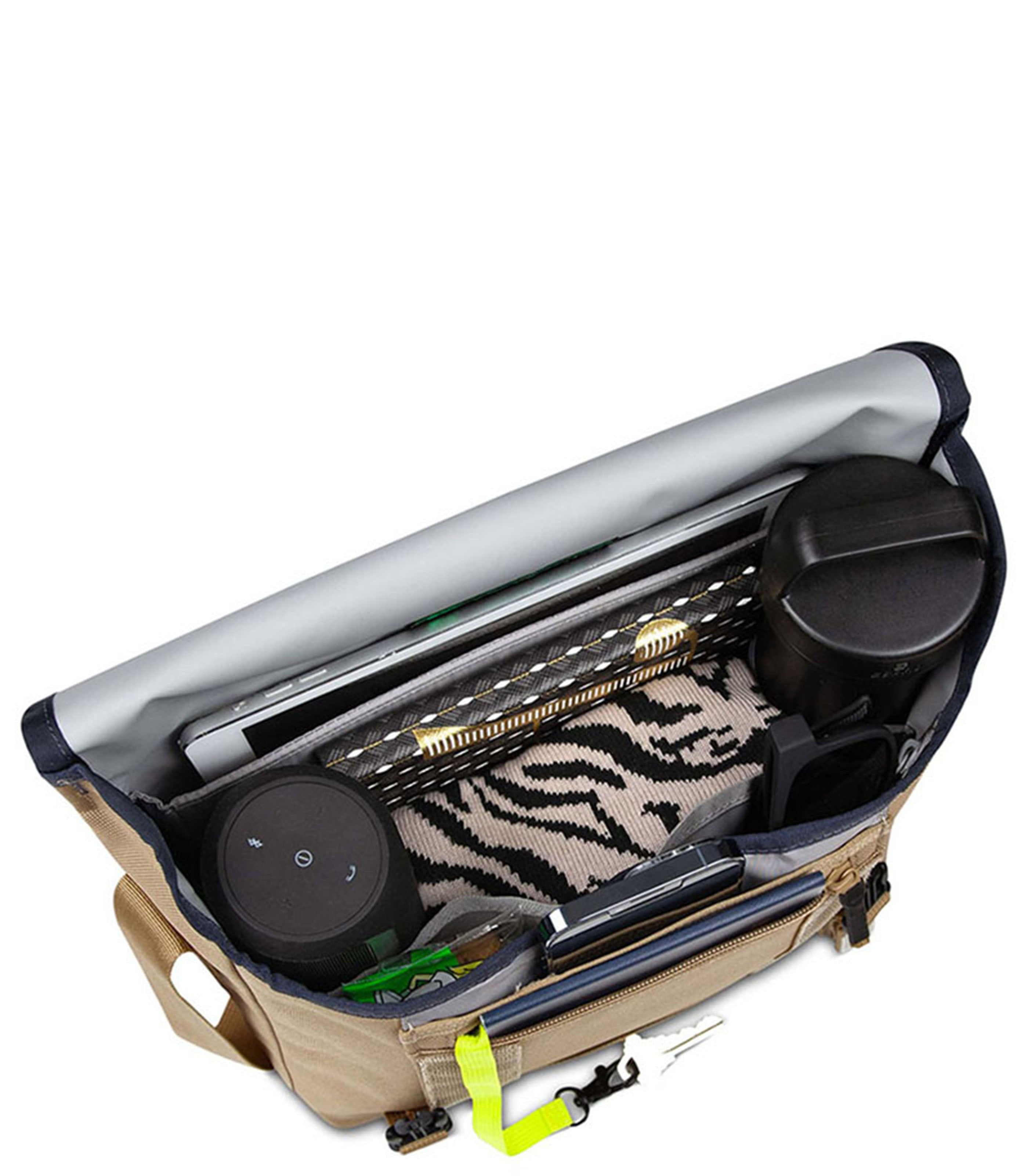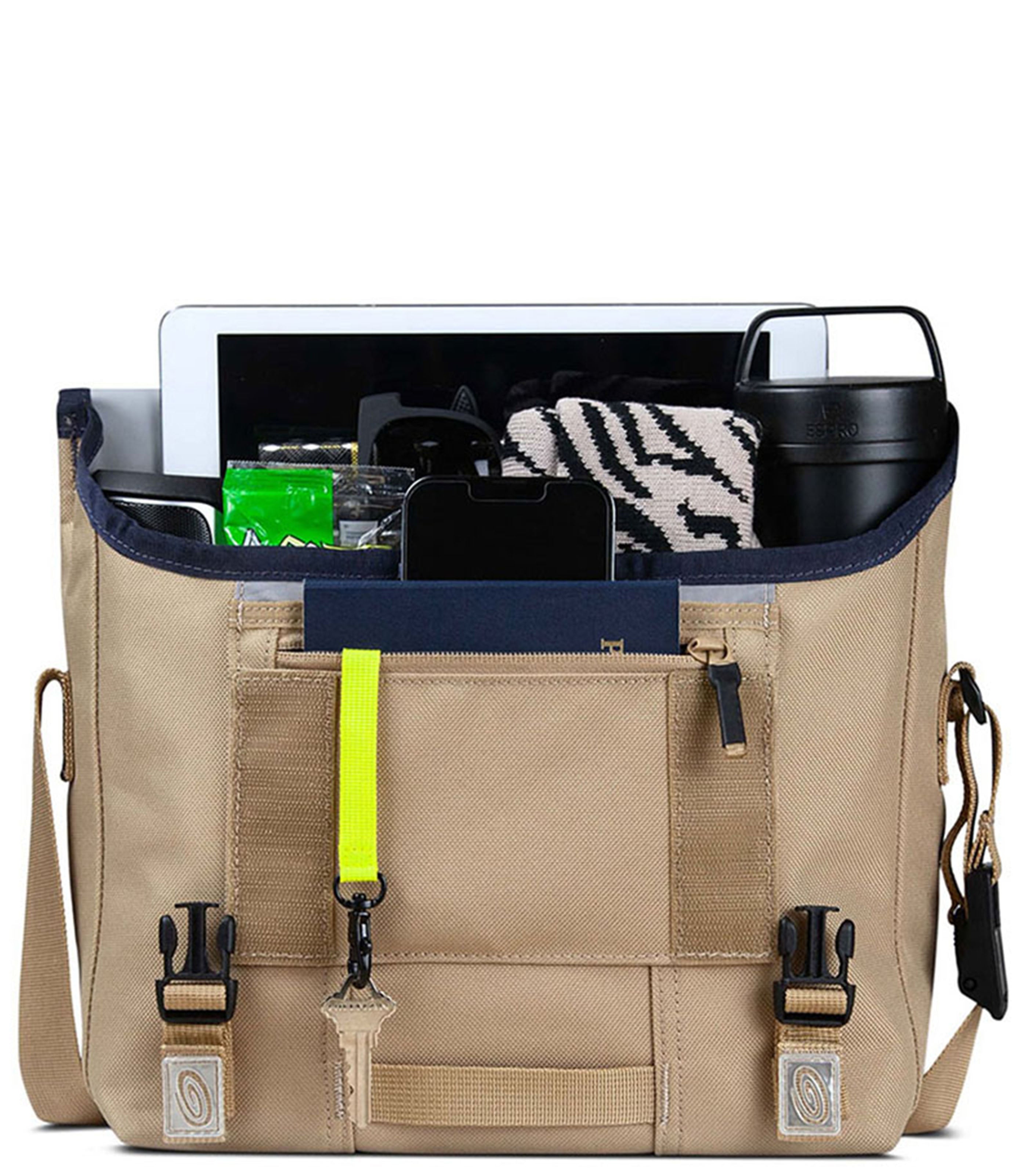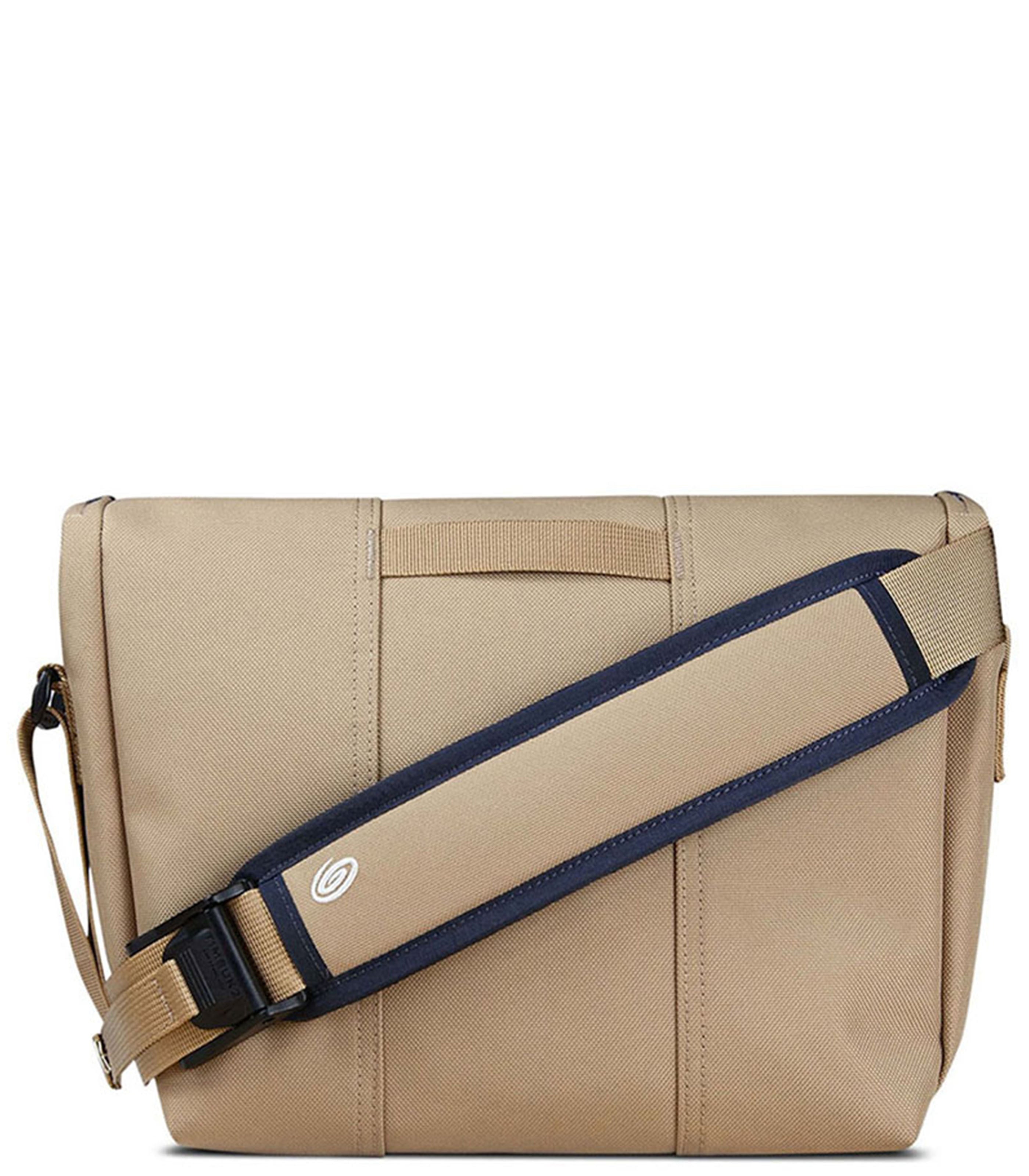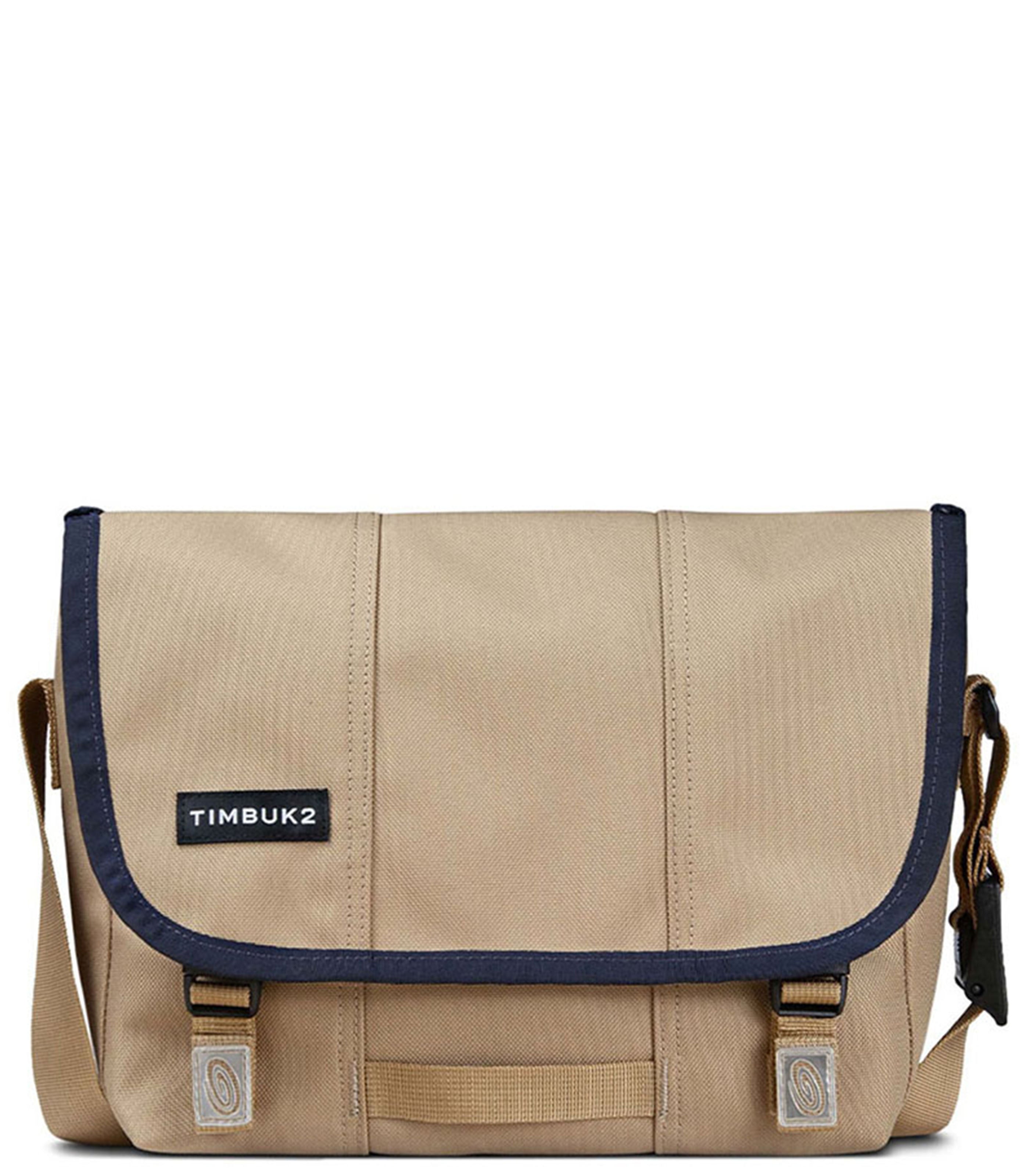 It’s our Classic Messenger Bag, designed in San Francisco over 30 years ago, enhanced with modern upgrades. The improved shoulder strap features a curved air mesh strap pad for comfort, durable webbing, and Timbuk2's Double-Loop CAM buckle for quick adjustment and to eliminate dangling straps. SR buckles are partially concealed behind the messenger flap for a refined but secure closure. Inside, the waterproof TPU liner and corner wings keep water out, and the internal water bottle pocket keeps water in. Distributed internal pockets and organization balance the weight of your carry. Removable crossbody strap add stabilization on sizes small and up. Exterior water-resistant finish for protection in light rain.