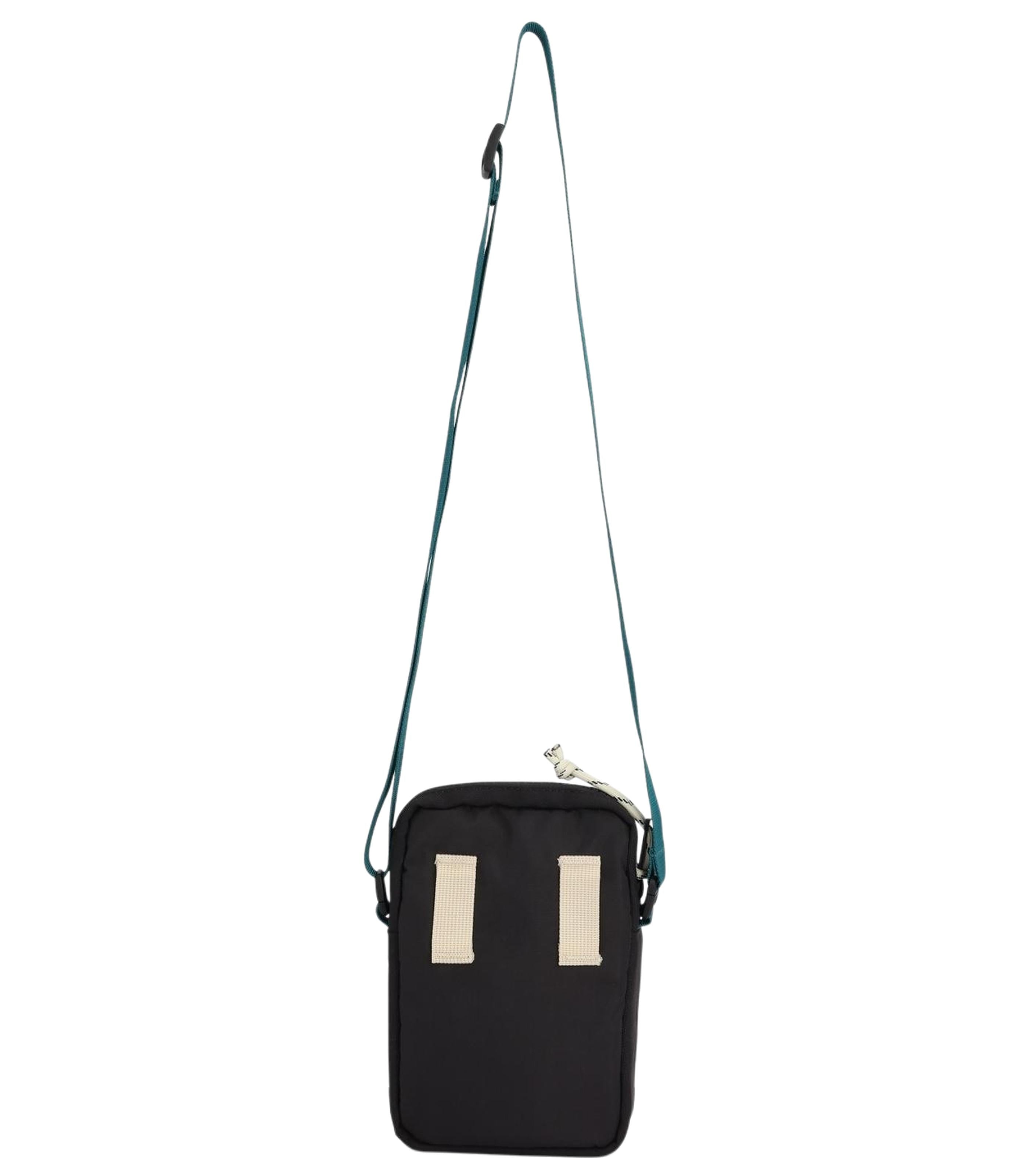 COLOR: BLACK/TECTONIC DIMENSIONS L: 13 CM W: 3 CM H: 20 CM WEIGHT 0.13 kg CAPACITY 1 L MATERIAL: 400D 100% Recycled Nylon / 1000D 100% Recycled Nylon FEATURES: - Adjustable webbing shoulder strap - Front diagonal zippered pocket - Bike light attachment loop - Internal org pocket