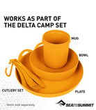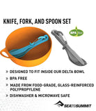 The Delta Cutlery Set is a short knife, fork and spoon utensil set designed to fit inside your Delta Bowl when camping. The supplied carabiner can be used to hang or clip the three utensils together. The knife has a part flat blade for easy spreading and part serrated blade for chopping. Made from BPA-free, glass-reinforced Polypropylene, it's durable lightweight and dishwasher safe.