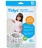 Tidys Disposable Toilet Seat Covers (1 pack with 10 pcs) are waterproof and hygienic solution to keep germs away when using public toilets. Take them along on all trips and errands. The generous extra large size allows children of all ages, even adults to have a germ barrier large enough for hands and bottoms. These potty protectors are a must for your diaper bag.