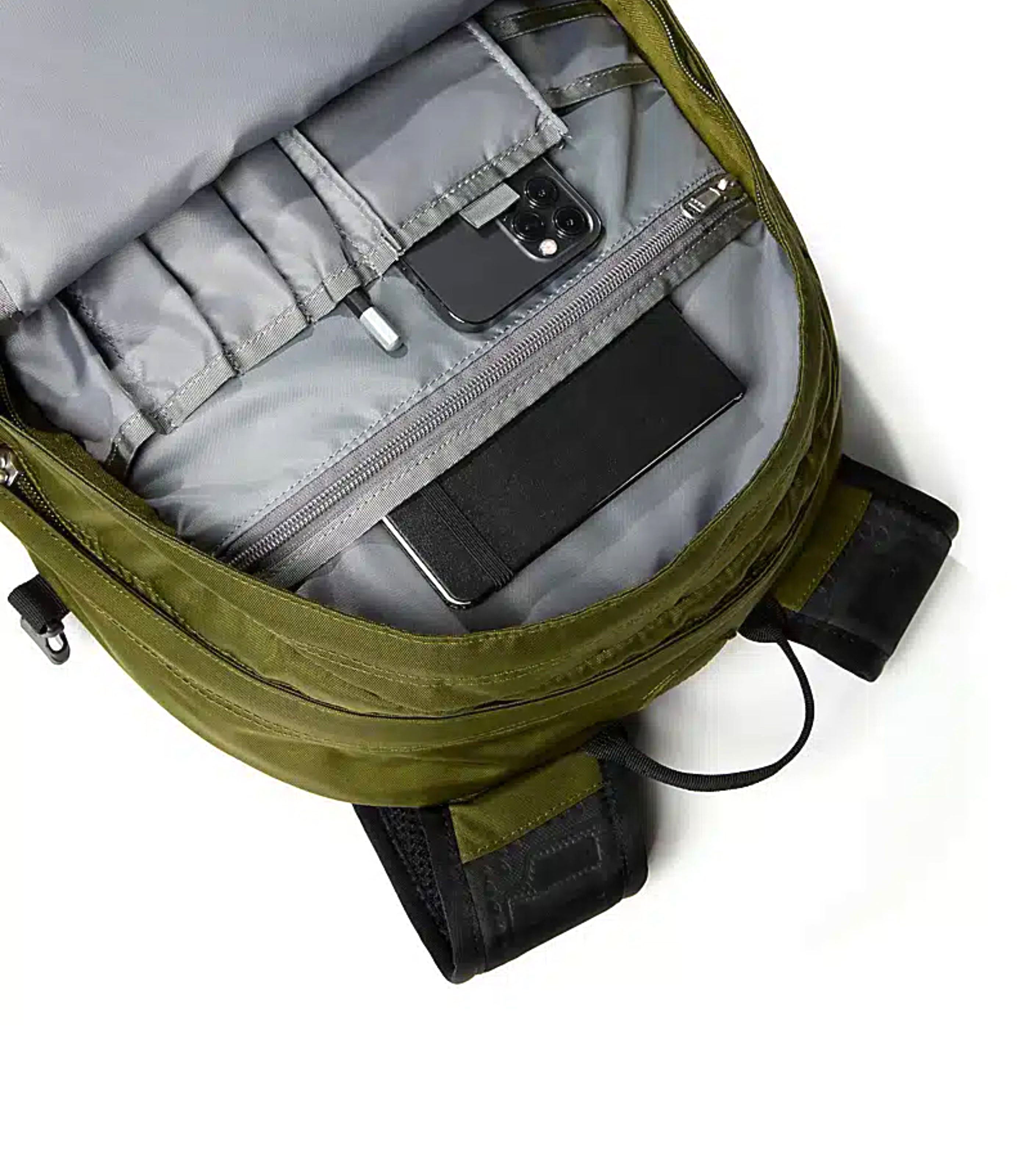 -moulded shoulder straps; an unbelievably comfortable, padded back panel; and a highly breathable lumbar panel, all certified by the American Chiropractic Association Large main compartment with internal organisation pockets, a hydration port and a sleeve for a 15" laptop Secondary compartment with internal organisation pockets Front stash pocket Two external mesh water bottle pockets External bungee
