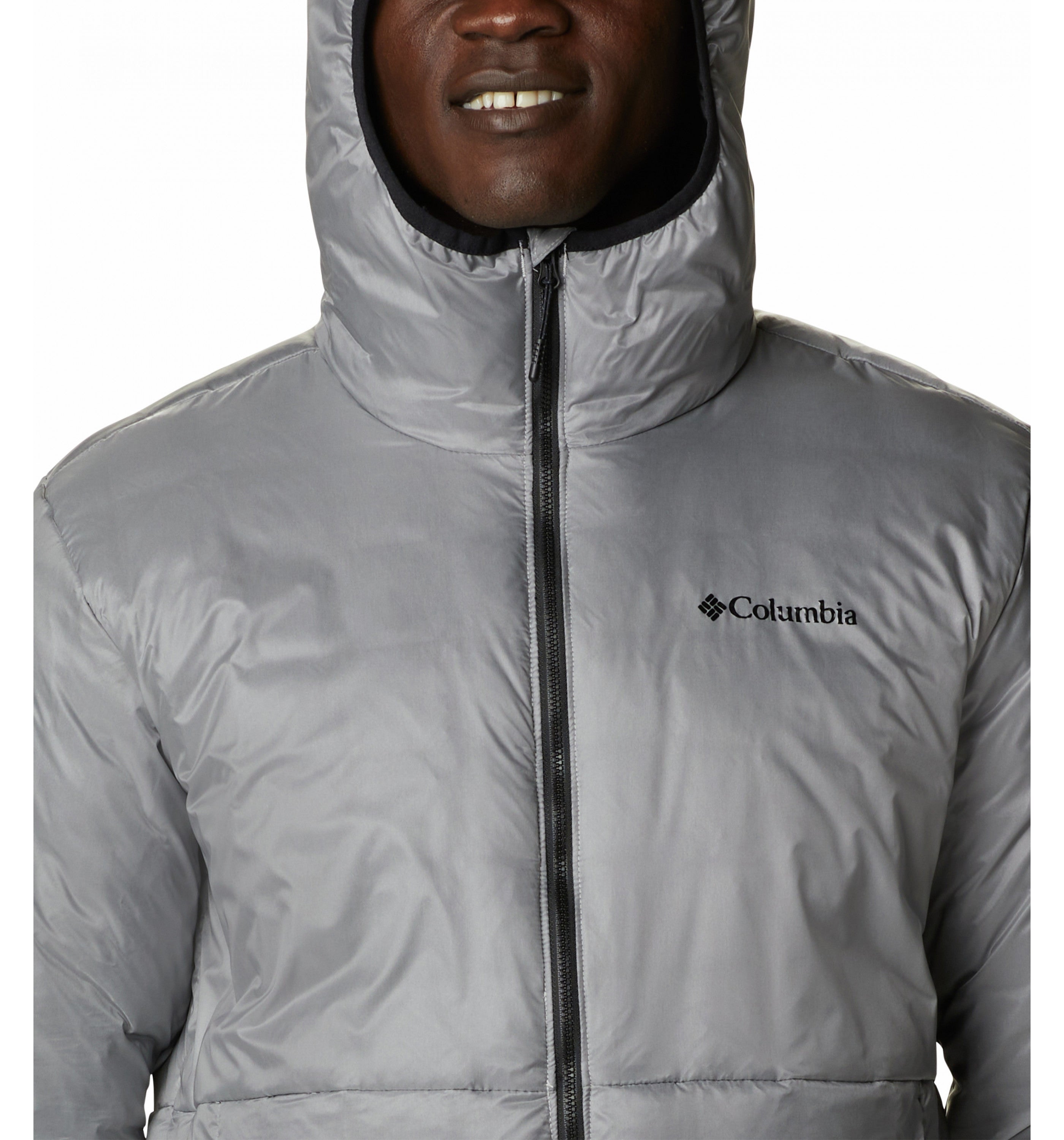 -Omni-HEAT™ thermal reflective -Omni-HEAT™ Recycled Synthetic Down -Double Wall™ Enhanced Insulating Construction -Water resistant fabric -Binding at hood, cuff, and hem -Chin guard -Zippered hand pockets -Shell: 100% Nylon. Lining: Omni-Heat™ Ref