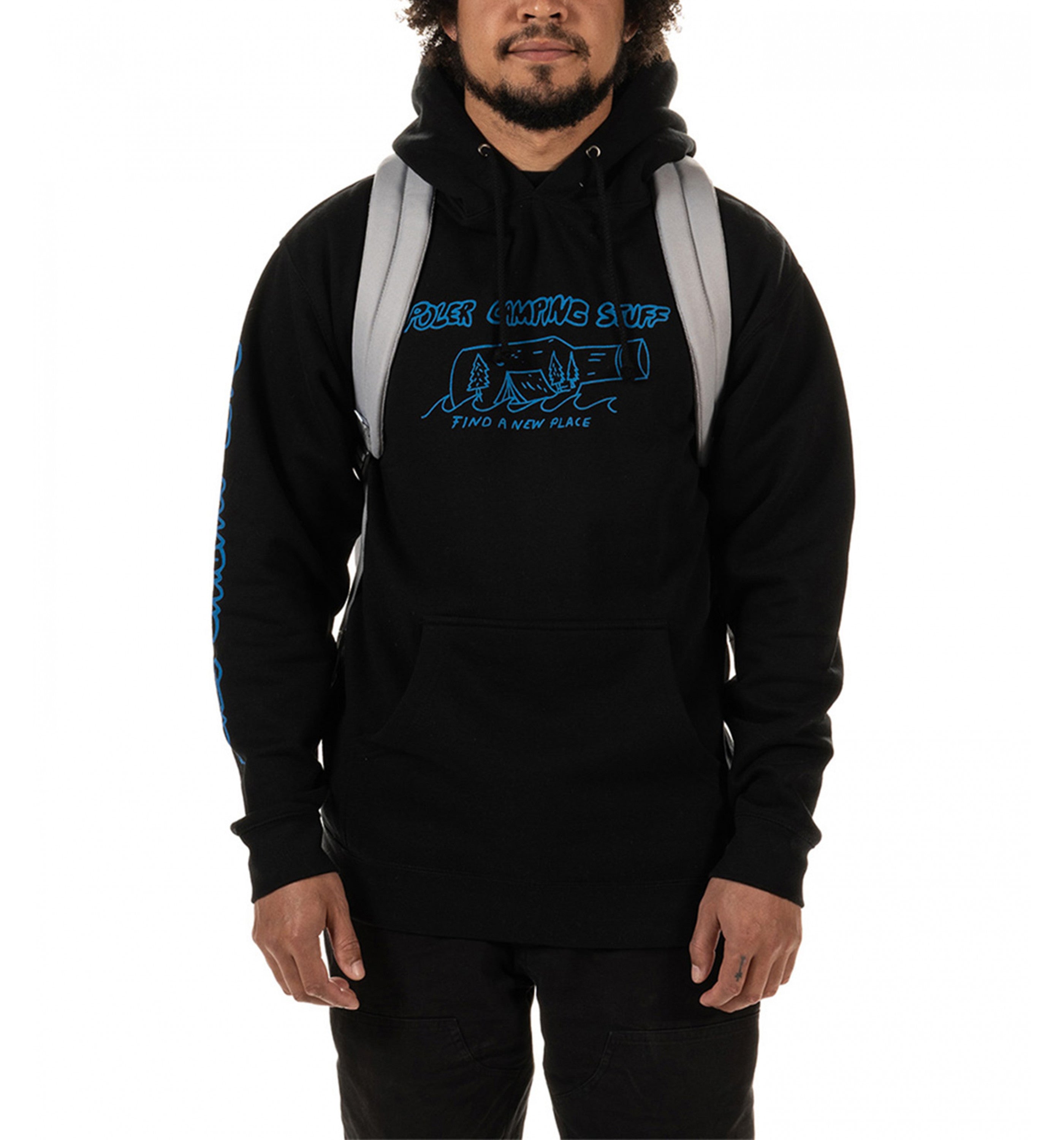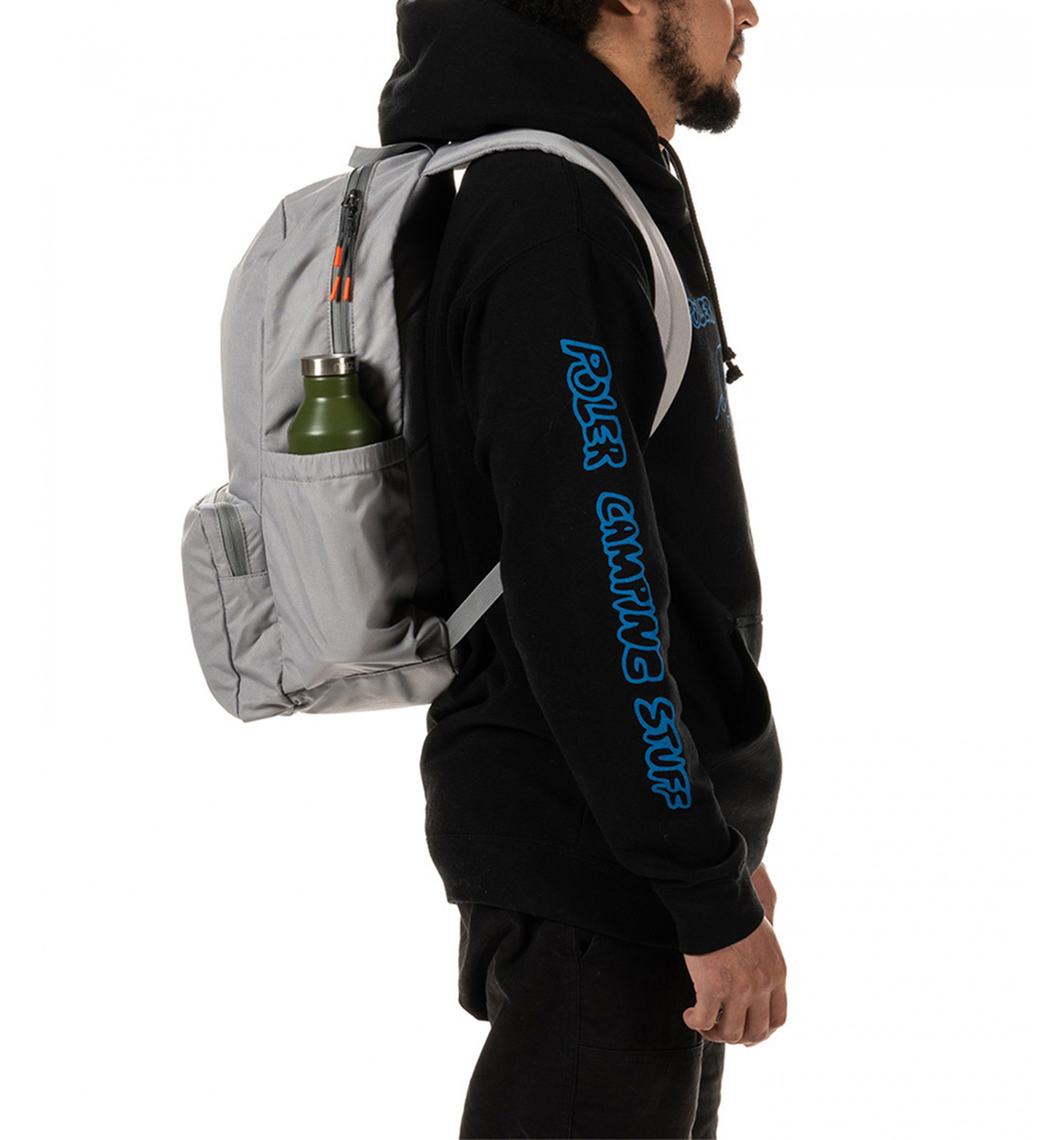 45cm H x 30cm W x 15cm D Padded back panel and shoulder straps with breathable mesh 2 interior slip pocket - the rear pocket can fit a 15" laptop 1 small interior zipped mesh compartment Water bottle compartments on each side of the bag Zippered front pocket Poler logo patch on the front pocket