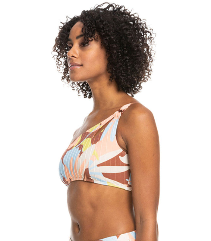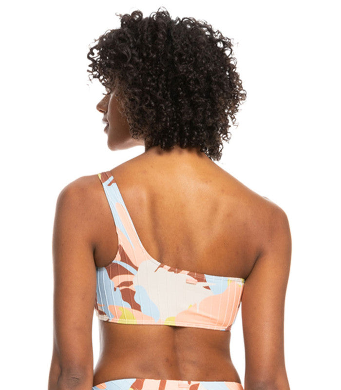 Made of soft and stretchy recycled swim fabric, this printed asymmetrical bikini top brings a modern look to your swimwear collection.