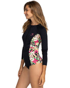 - Long Sleeve Zipped Rash Vest for Women. Features include: Fabric: Soft, resistant stretch, recycled nylon elastane blend fabric.