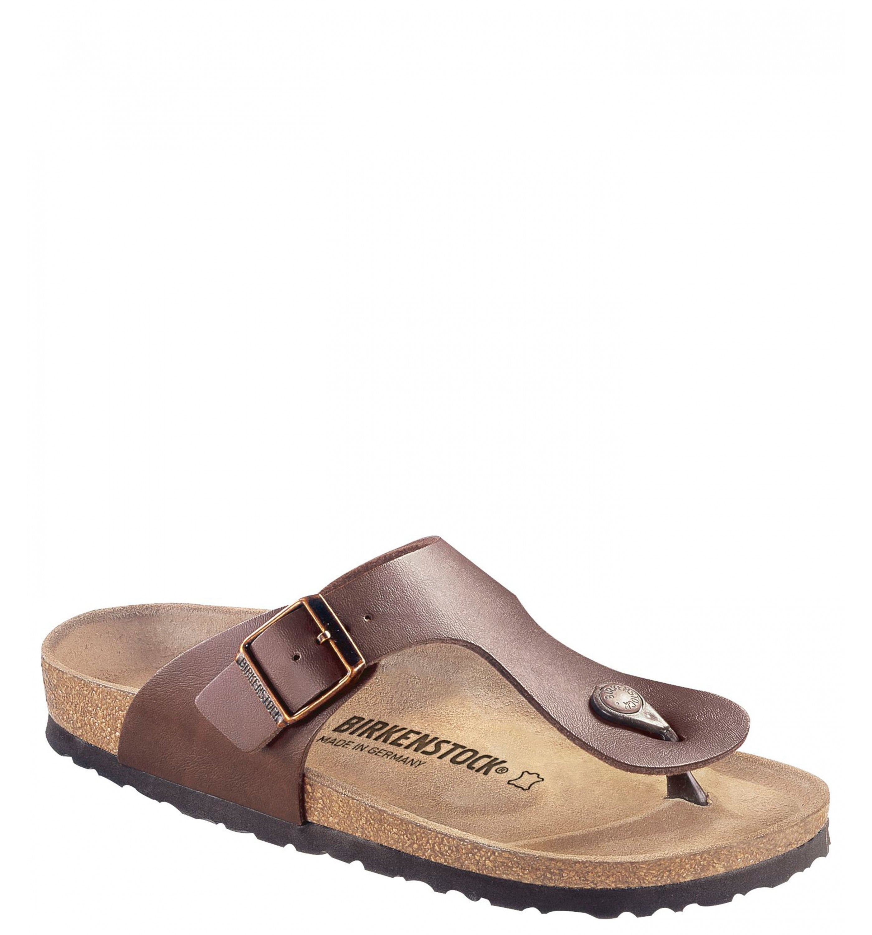 The BIRKENSTOCK Ramses is the men’s version of the popular Gizeh thong sandal. The slightly wider strap lends this sandal a strikingly masculine appearance. The upper is made from the skin-friendly, hard-wearing synthetic material Birko-Flor®.
