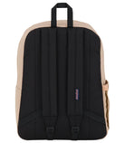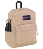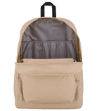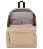 COLOR: TRAVERTINE CAPACITY 26 L FEATURES -100% Recycled Polyester 600 Denier -One large main compartment -Side water bottle pocket -Internal padded sleeve fits 15 inch laptop -600 Denier Polyester -Iconic straight-cut, padded shoulder straps -Front utility pocket with organizer -Fully padded back panel -Web haul handle -Cord zipper pulls - - - -