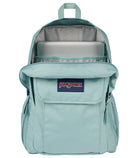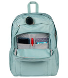COLOR: FADED SAGE CAPACITY 27 L FEATURES - One large main compartment - Dual side water bottle pockets - 15-inch laptop sleeve - Front utility pocket with organizer - Front stash pocket with quick access flap closure - Iconic straight cut, padded shoulder strap - Exterior top zippered stash pocket - Fully padded back panel - Web haul handle