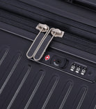 ? Designed with premium details: satin finish, locking zippers, vegan leather trim, and optional RAKU luggage belt.